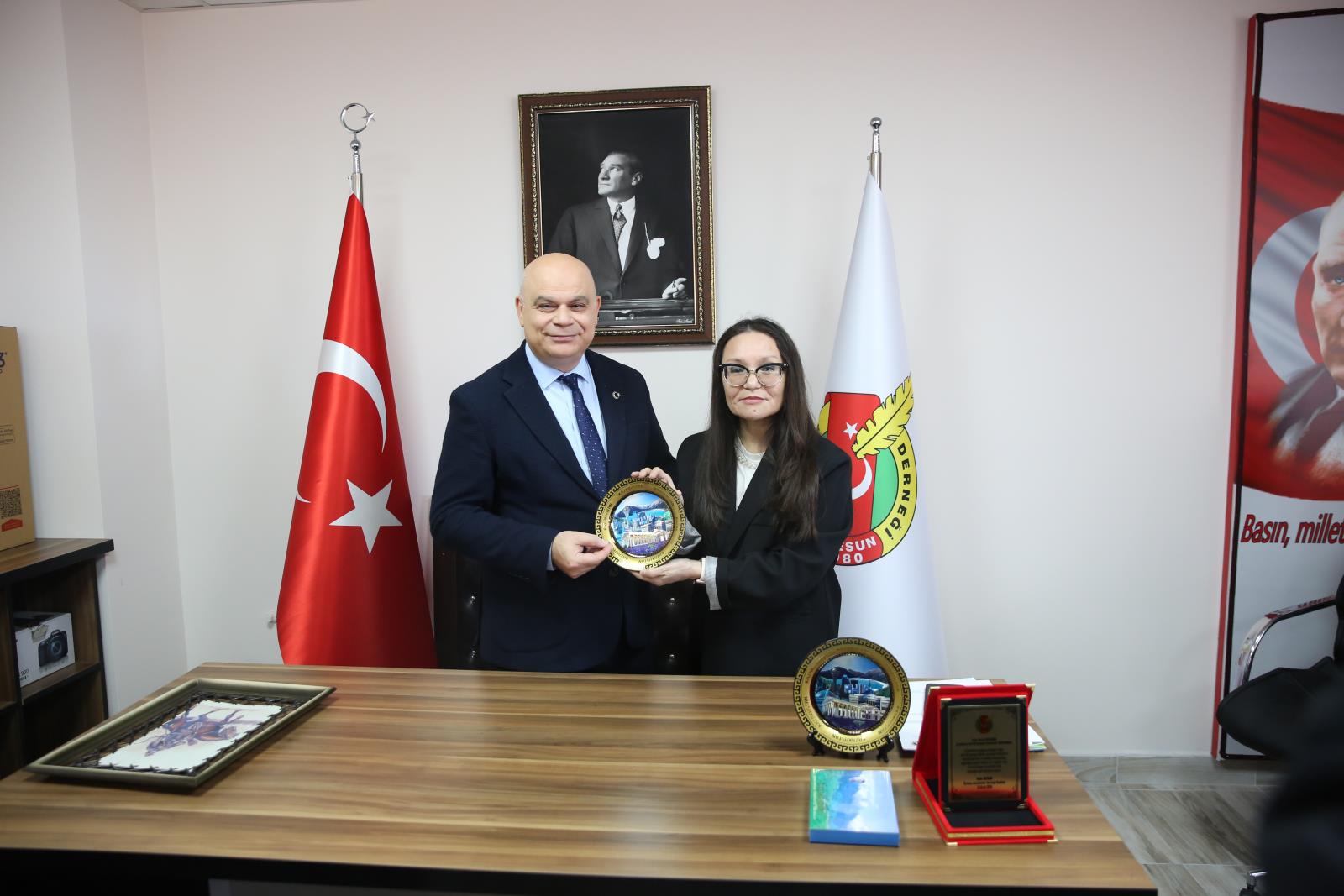 Prof. Dr. Güven Özdem Giresun Gazeteciler Cemiyeti Başkanı Bekir Bayram'a bir çiçek takdim ederek, kendisinin nezdinde tüm gazete çalışanlarının bu önemli gününü kutladı. Yurtdışında bulunması sebebiyle ziyarete katılamayan Rektörümüz Prof. Dr. Yılmaz Can'ın selam ve tebriklerini iletti.
