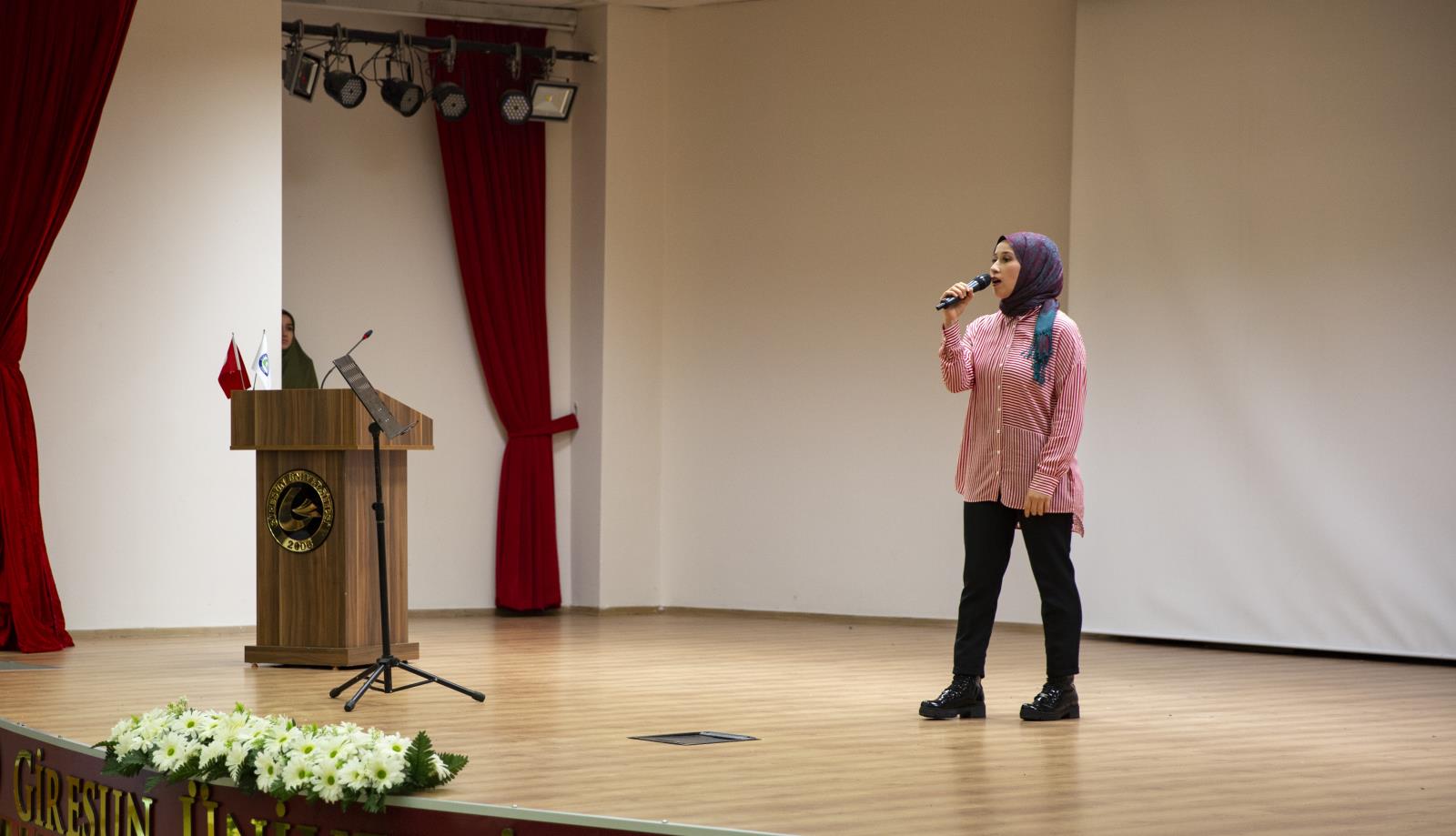 Konuşmasının sonunda kendi yazdığı bir şiiri seslendiren Sayın Elmas’ın ardından topluluk öğrencileri de kendi yazdıkları şiirleri sahnede seslendirdiler.