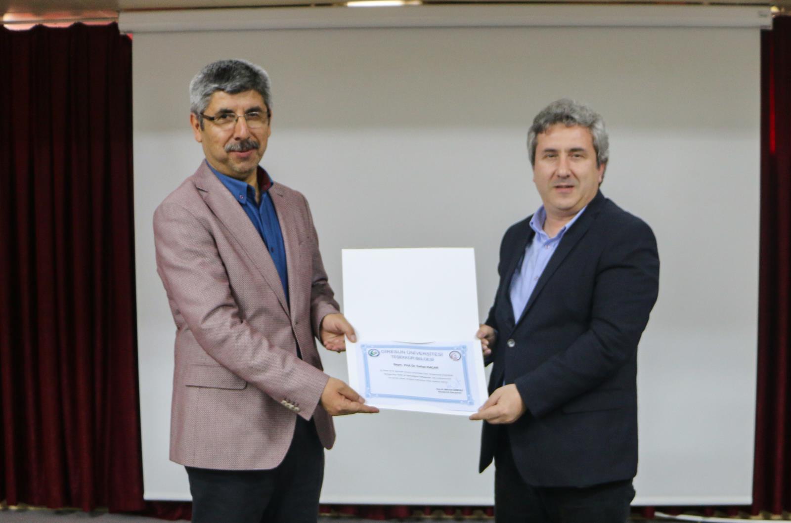 Üniversitemiz akademik ve idari personeli ile öğrencilerin katıldığı program sonunda Eğitim Fakültesi Dekanı Prof. Dr. Murat Taş, günün anısına hazırlanan teşekkür belgesini Sayın Kaçar’a takdim etti.