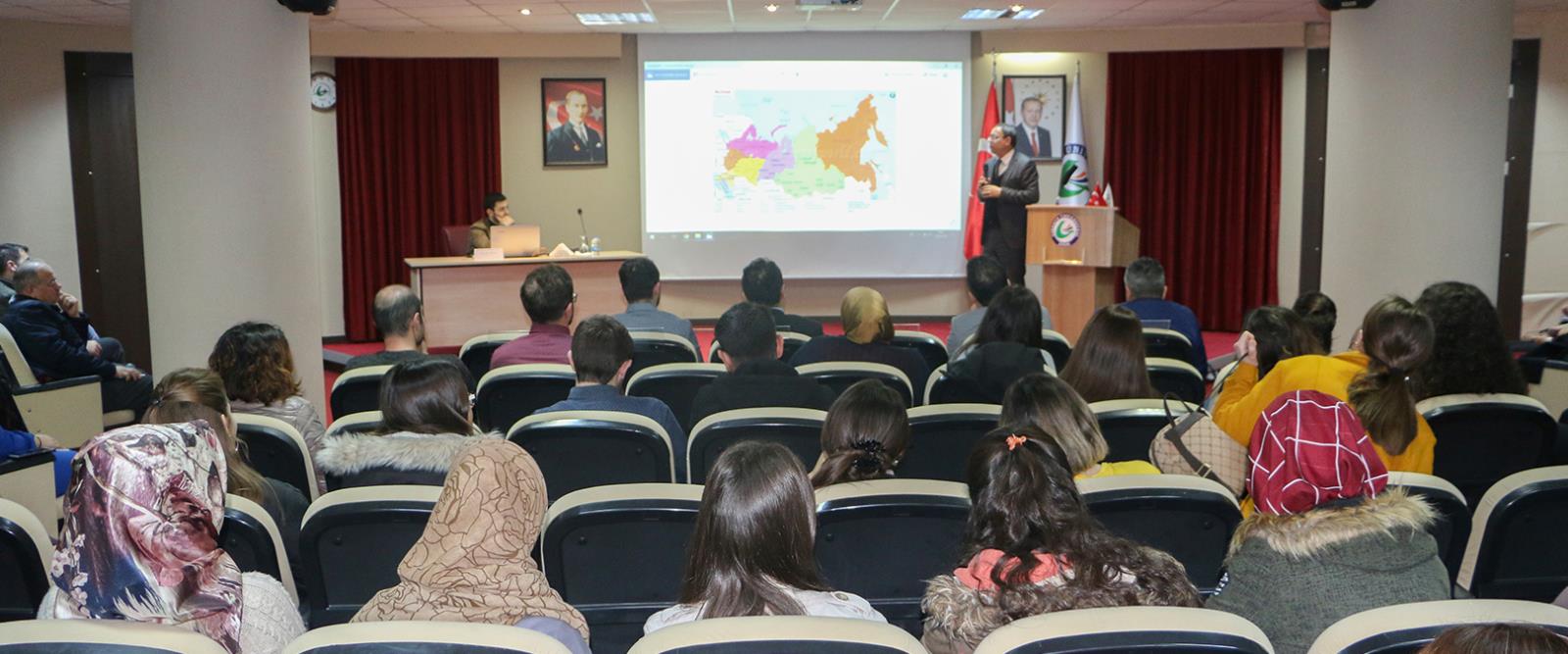 Topluluk Akademik Danışmanı Doç. Dr. Yalçın Sarıkaya’nın açılış konuşmasıyla başlayan konferansta, Prof. Dr. İlyas Topsakal, Türk - Rus ilişkilerinin başladığı tarihten günümüze kadar geçen süreçte yaşananları değerlendirdi. İki toplum arasındaki ilişkilerin genel çerçevesine değinen Topsakal, bunun siyasi, ekonomik ve kültürel etkilerini Türk dünyası açısından ele aldı.