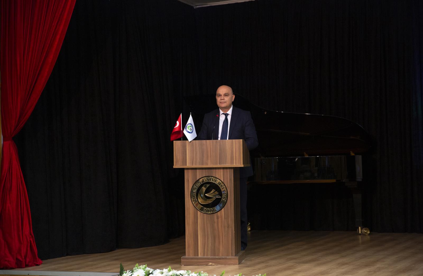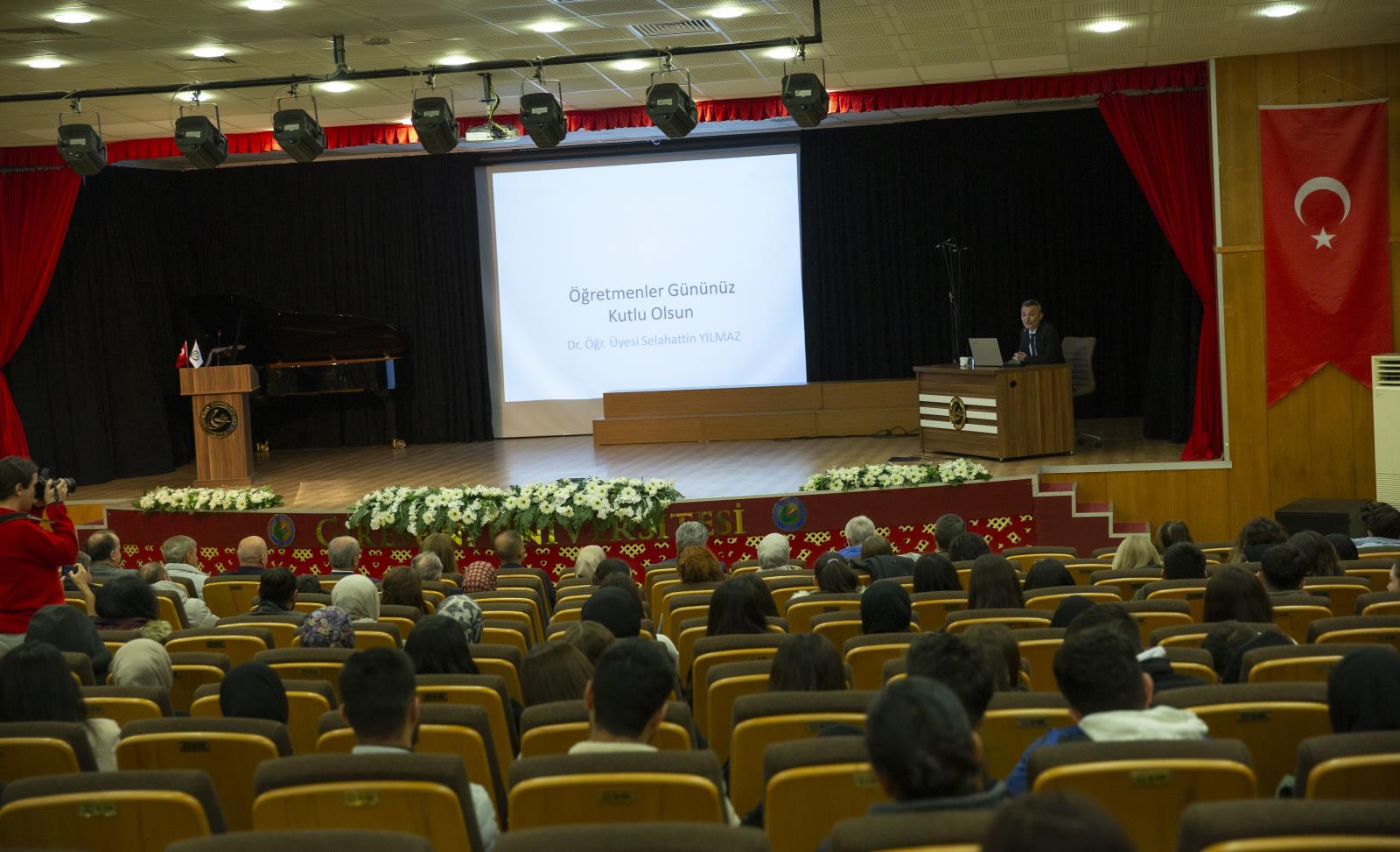 Devamında konuşan Rektörümüz Prof. Dr. Yılmaz Can ise, “24 Kasım Öğretmenler Günü münasebetiyle tüm öğretmenlerimizin gününü kutluyorum. Şahsen bana öğretmenlik yapan tüm öğretmenlerimi şükranla selamlıyorum. Ayrıca şehit öğretmenlerimize de rahmet diliyorum. Öğretmenlik yeryüzünde var olan en kutsal meslektir. Ben de 35 seneye yakın öğretmenlik yaptım. Yeniden dünyaya gelsem tercihim yine öğretmenlik olurdu. Bu mesleği çok seviyorum. Bize bilmediğimizi öğretiyor öğretmenlik. Hayatın hakikatlerini de öğretiyor. Öğretmenlerimizin öğrettikleriyle biz hayata tutunuyoruz ve meslek sahibi oluyoruz. Günümüzde dünya devletlerine baktığımızda en önemli güç, değer, zenginlik iyi eğitilmiş bireylere sahip olmaktır. Bir toplum iyi eğitilmiş bireylere sahipse o toplum aynı zamanda kalkınmış, gelişmiş bir toplumdur. İyi nitelikli eğitim hem ekonomik kalkınmanın ön koşulu hem de sağlıklı işleyen bir demokratik düzen kurmanın ön koşuludur. Bu sistem ancak iyi eğitilmiş bireylerin eliyle inşa edilir. Öğretmenler bu noktada toplumumuzun geleceğini inşa ediyorlar. En değerli varlıklarımızı geleceğe hazırlıyorlar.” diyerek sözlerini noktaladı.