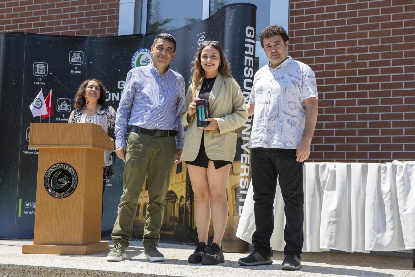 Törene, Çevre Şehircilik ve İklim Değişikliği İl Müdürü Murat Cavunt, Giresun Tapu İl Müdürü Orhan Köroğlu, Üniversitemiz Rektör Yardımcıları Prof. Dr. Güven Özdem ve Prof. Dr. Hüseyin Şahin, Çevre Şehircilik ve İklim Değişikliği İl Müdürlüğü temsilcileri, Üniversitemizin değerli akademik ve idari personellerinin katıldığı program, yarışmanın koordinatörlüğünü yürüten Giresun Üniversitesi Çevre Sorunları, Temiz Üretim Uygulama ve Araştırma Merkezi Müdürü Doç. Dr. Özlem Tunç Dede’nin açılış konuşması ile başladı. Bu yıl ilkinin gerçekleştirildiği Atık Çarkı yarışması ile döngüselliğe dayalı bir kaynak ve atık yönetimi yaklaşımı olan “Sıfır Atık” temelinde, sürdürülebilir bir üretim ve tüketim alışkanlığını teşvik etmek amacıyla üniversite öğrencileri arasında atıkların geri dönüştürülerek faydalı ürünlere/eserlere dönüştürülmesi ve çevresel farkındalığın arttırılmasının hedeflendiğini belirten Doç. Dr. Özlem Tunç Dede; öğrencilerin eğitim gördükleri camiada oluşan atıkları faydalı ürünlere dönüştürmeleri, atık malzemelerden yeni eserler/ürünler ortaya çıkararak yeşil dönüşüme katkı sağlamaları ve toplumda çevre bilincinin oluşturulmasında aktif rol almaları için teşvik edici olacağını belirtti. Yarışmaya katılan eserlerde öğrenciler kağıt, metal, cam, ahşap, tekstil atıkları vb. atık malzemeleri kullanarak çok çeşitli eserler oluşturmuş ve hepsi birbirinden değerli olan eserler Üniversitemiz akademik personelleri ve Çevre Şehircilik ve İlkim Değişikliği İl Müdürlüğü temsilcilerinden oluşan jüri üyeleri tarafından değerlendirilmiştir. Yarışmada atık karton, pet şişe, eski keçe ve kumaşların kullanıldığı Işıklı Kumbara eseri ile Sude Keleş üçüncülük ödülü; atık pet şişe, yumurta kabı, kullanılmış çöp şiş, atık kahve kutusu atıklarının kullanıldığı eserde doğadan ilham alınarak yapılan Solmayan Çiçekler eseri ile Ayşe Yılmaz ve Fatma Yılmaz ikincilik ödülü; eserinde inşaatlar ve çevreden temin ettiği atık telleri ve marangoz çöpünden elde ettiği ahşap malzemeyi kullanarak kanatsız bir kuş yapan ve bu eseri ile çevre kirliliğinin hayvanların özgürlüğünü ve hayatını kısıtladığı mesajını vermek isteyen Burhan Soycan ise birincilik ödülü almaya hak kazandı. Yarışmada ayrıca “Adeta karanlık hayatınızda açacak bir çiçek” olarak tanımladığı Aydınlık çiçek eseri ile Alihan İlgeç ve eskimiş tava, deniz kabukları, taş ve kum yardımıyla “Tavanın Tabloya Dönüşümü” eseri ile Tuba Uyar mansiyon ödülü almaya hak kazanırken, atık olarak bilinen haşlanmış nohut suyu ve yağı alınmış fındık posasını fındık yağı ile muamele ederek yan ürünler ile vegan mayonez üretimi yapan ve “Veganez” olarak isimlendirdiği ürünü ile Dicle Rojbin Kösen ise jüri özel ödülü almaya hak kazandı.