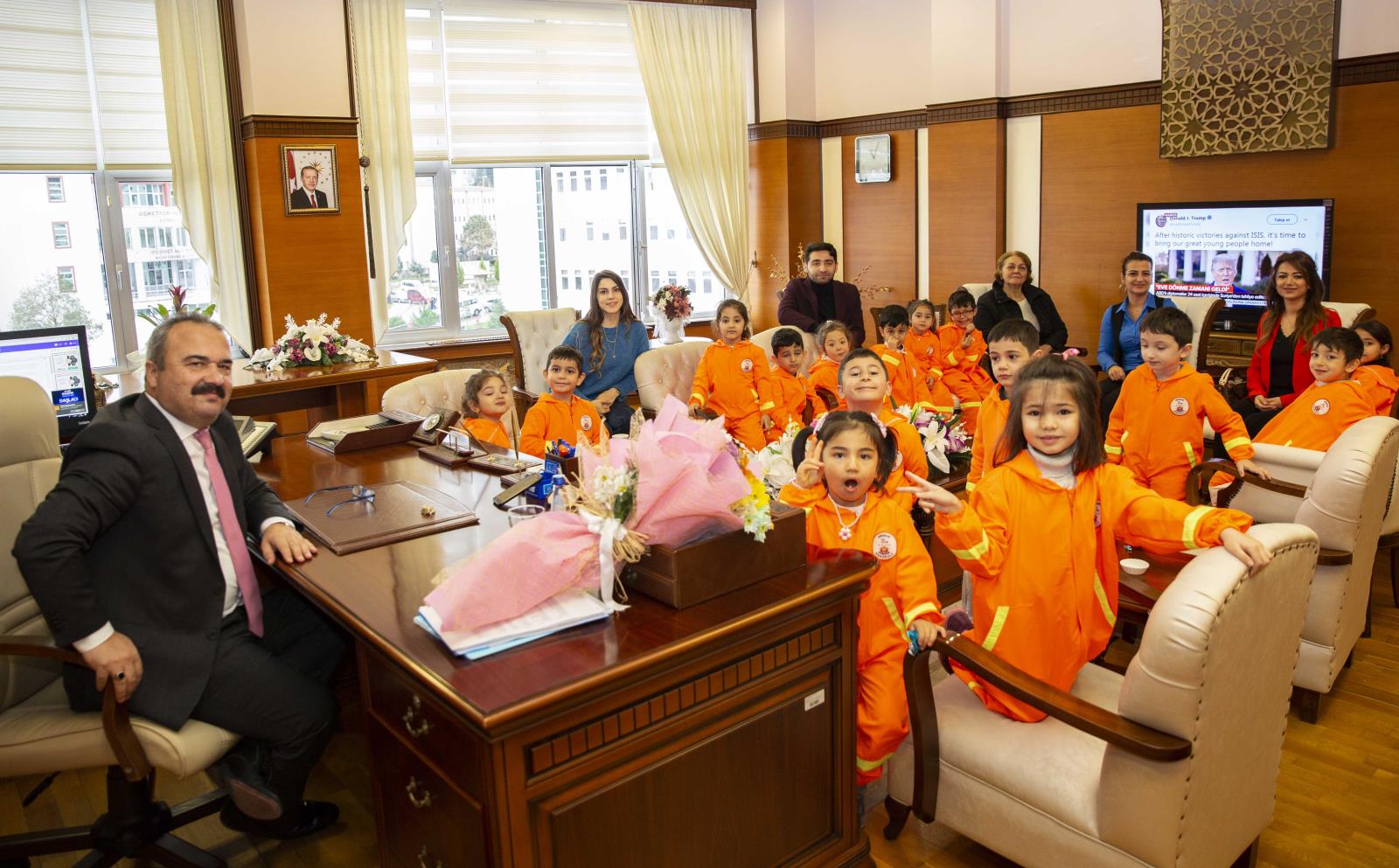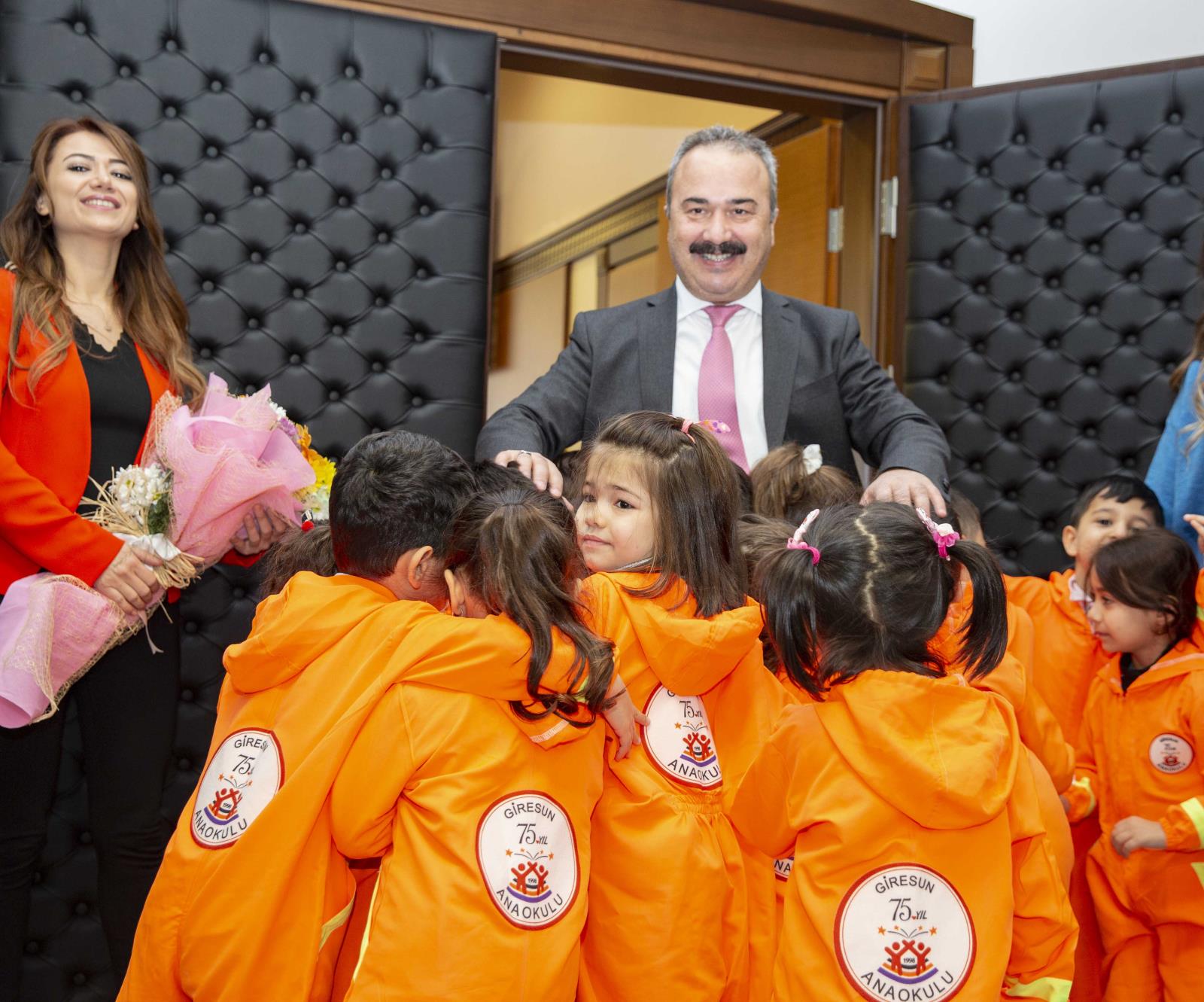 Giresun Merkez 75.Yıl Anaokulu öğrencileri, Okul Müdürü Gökşen Akkuş, Sınıf Öğretmenleri Selver Beken ve Stajyer öğretmen Gülşah Çevik ve Tayfun Cansız ile birlikte, Rektörümüz Prof. Dr. Cevdet Coşkun’u ziyaret ettiler.