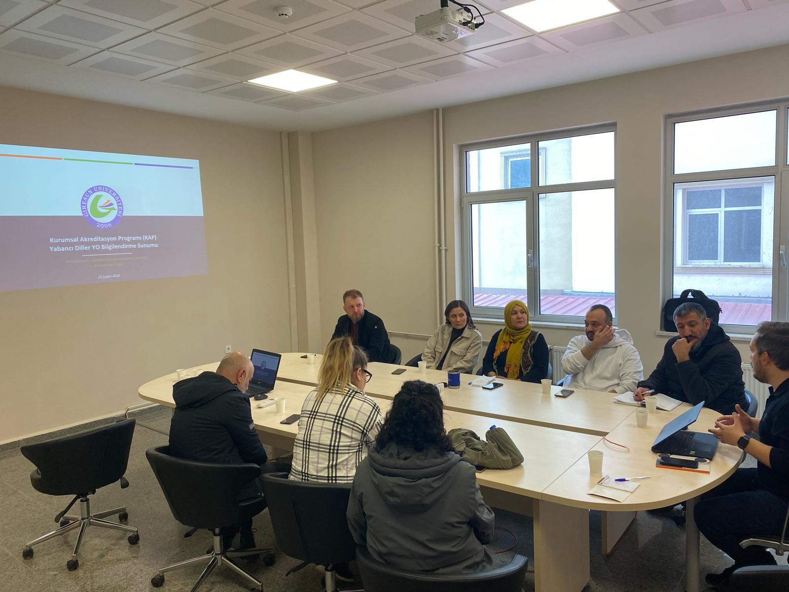 Toplantılarda, Akreditasyon, Akademik Değerlendirme ve Kalite Koordinatör Yardımcısı Dr. Öğr. Üyesi Hakan Sipahi, üniversitedeki kalite güvencesi ve program akreditasyon süreçleri hakkında bilgi verdi. Yükseköğretim Kalite Kurulu (YÖKAK) tarafından yürütülen kurumsal dış değerlendirme süreçleri, Kurumsal Akreditasyon Programı (KAP), program basamakları, ölçütler, değerlendirme yöntemi ve mevzuat uygulaması gibi konularda ele alındı.