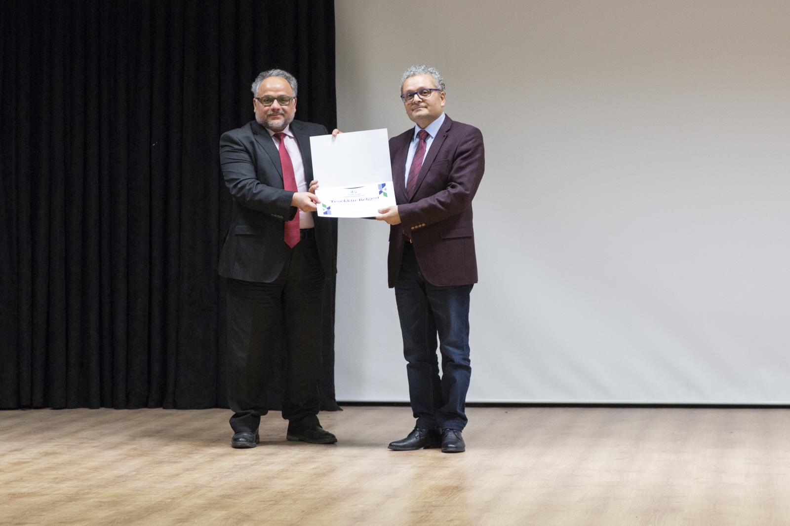 Konferans sonunda Rektör Yardımcımız Prof. Dr. Gürol Yıldırım, konuşması için Doç. Dr. Fuat Uçar’a teşekkür belgesi takdim etti.