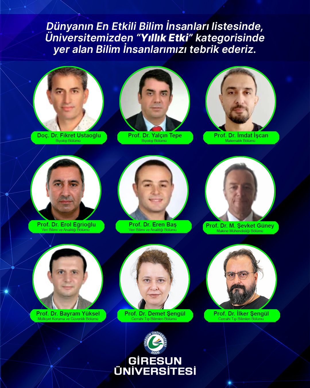 Üniversitemizden “Yıllık Etki” kategorisinde yer alan akademisyenlerimiz;
