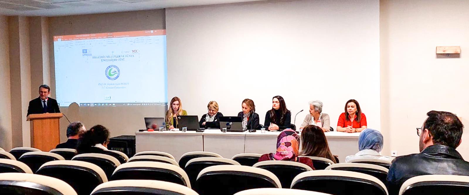 Panelde moderatörlüğü, İktisadi ve İdari Bilimler Fakültesi öğretim üyesi ve Çocuk Hakları Uygulama ve Araştırma Merkezi Müdürü Doç. Dr. Yasemin Mamur Işıkçı yaptı. İktisadi ve İdari Bilimler Fakültesi Dekanı Prof. Dr. Kurtuluş Yılmaz Genç tarafından yapılan açılış konuşmasıyla başlayan panelde konuşmacılar; Kadın ve Aile Uygulama ve Araştırma Merkezi Müdürü Prof. Dr. Reyhan Ayşen Wolff Fen Edebiyat Fakültesi Sosyoloji Bölümü öğretim üyesi Prof. Dr. İlknur Meşe, Sağlık Bilimleri Fakültesi Hemşirelik Bölümü öğretim üyesi Doç. Dr. Emine Ela Küçük, İktisadi ve İdari Bilimler Fakültesi İşletme Bölümü öğretim üyesi ve Dekan Yardımcısı Doç. Dr. Esra Gökçen Kaygısız ve Bilim Uzmanı Muazzez Damcı, engelliliği farklı boyutlarıyla ele aldılar. Panelde, engellilik konusu sosyoloji, teknoloji, hukuk ve sosyal dışlanma boyutlarıyla değerlendirildi. Etkinlikte, engellilere eşit bireyler olarak bütün sosyal süreçlerde, üretim süreçlerinde yer vermenin önemi vurgulandı. Yine, engellilere karşı yaşanabilecek her türlü ayrımcılığın önlenmesi gerektiği ifade edildi. Bunun yanında, engelliliğe yol açan koşulların ortadan kaldırılması, sorunlara insani olduğu kadar bilimsel çözümler de bulunması gerektiği üzerinde duruldu.