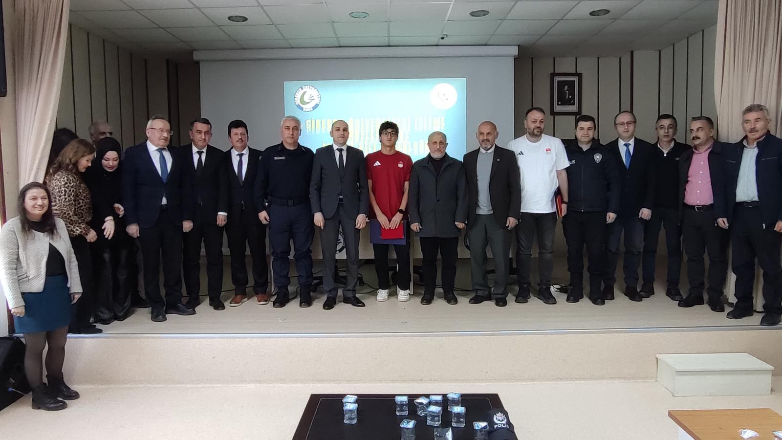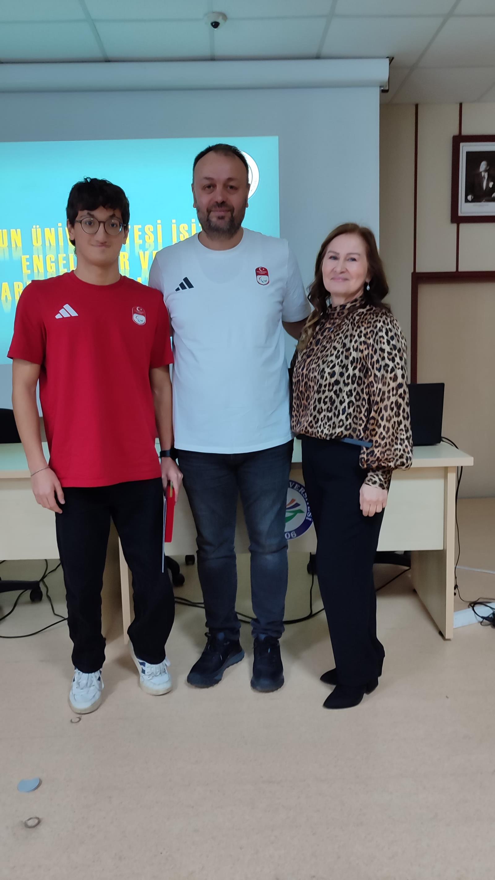 Eynesil Kaymakamı Erkut PAMUK, Belediye Başkan Vekili Haluk OKUR, Kamil Nalbant Meslek Yüksekokulu Müdürü Engin KABAN, İlçe Jandarma Komutanı Yusuf BARAN, İlçe Emniyet Müdürü Uğurcan İPEK, Üniversitemiz akademik ve idari personeli, kamu ve sivil toplum kuruluşlarının temsilcileri ile öğrencilerin katıldığı program, açılış konuşmalarıyla başladı. Daha sonra kürsüye çıkan doğuştan engelli dünya şampiyonu sporcumuz Turgut Aslan YARAMAN, çocukluğundan bu yana yaşadığı sıkıntıları ve bunları nasıl aştığını dinleyicilerle paylaştı. 16 yaşına kadar geçirdiği sayısız ameliyatın ardından ailesinin desteğiyle başladığı yüzme sporunda dünya çapında başarılara imza atan, dünya şampiyonluğu, 2024 Paris Olimpiyatları’nda dördüncülük, Avrupa şampiyonlukları ve paralimpik yüzme dalında kırdığı dünya rekoruyla Türkiye’nin gururu olan sporcumuzun başarısı hikayesi salondan büyük alkış aldı.