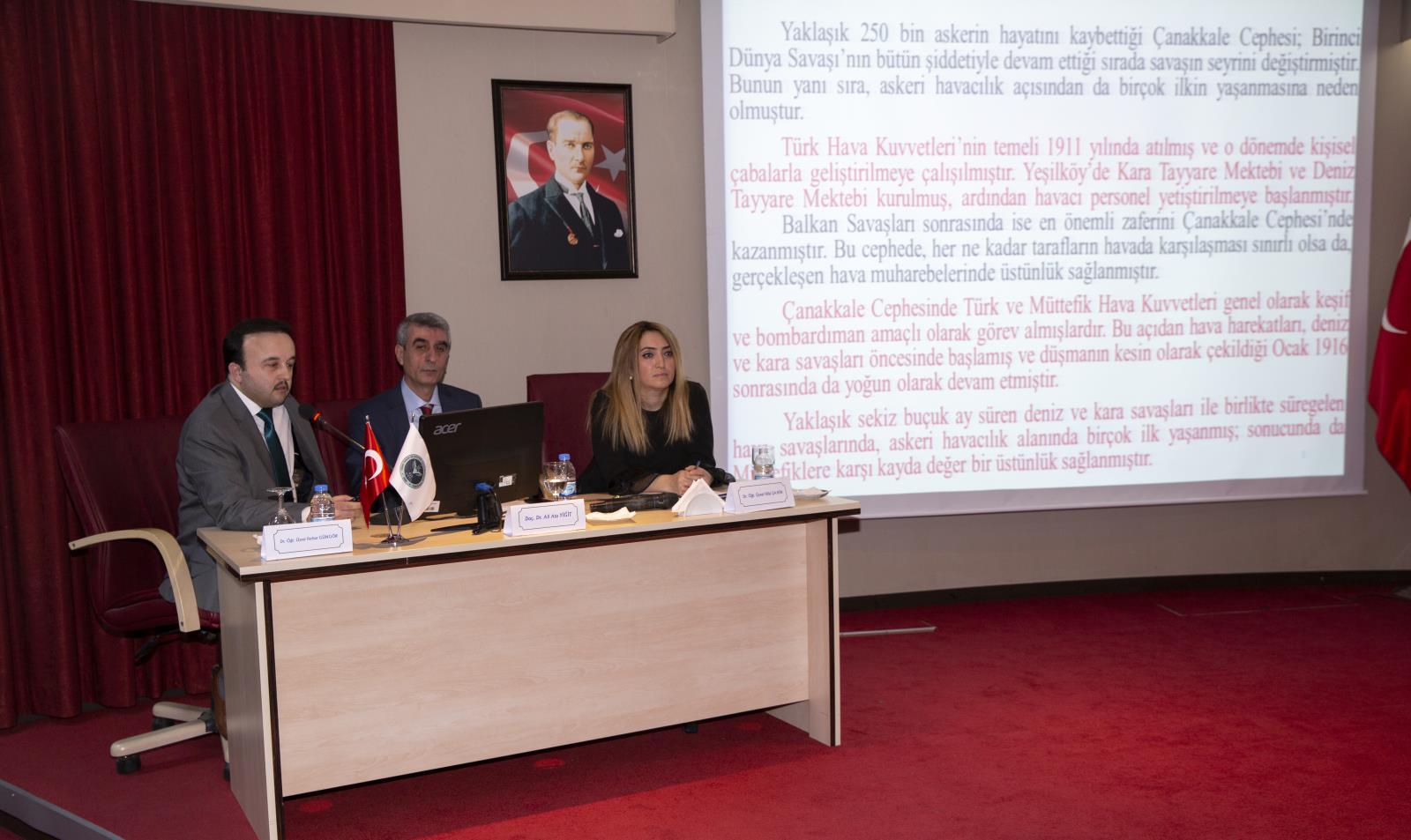 Çanakkale Savaşlarında Türk hava harekatı konusunda sunum yapan Dr. Öğr. Üyesi Ferhat Güngör, Türk askeri tarihinin en önemli savaşlarından biri olan Çanakkale Savaşlarında, hava kuvvetlerinin rolünün pek fazla incelenmediğini ve gündeme getirilmediğini söyledi.