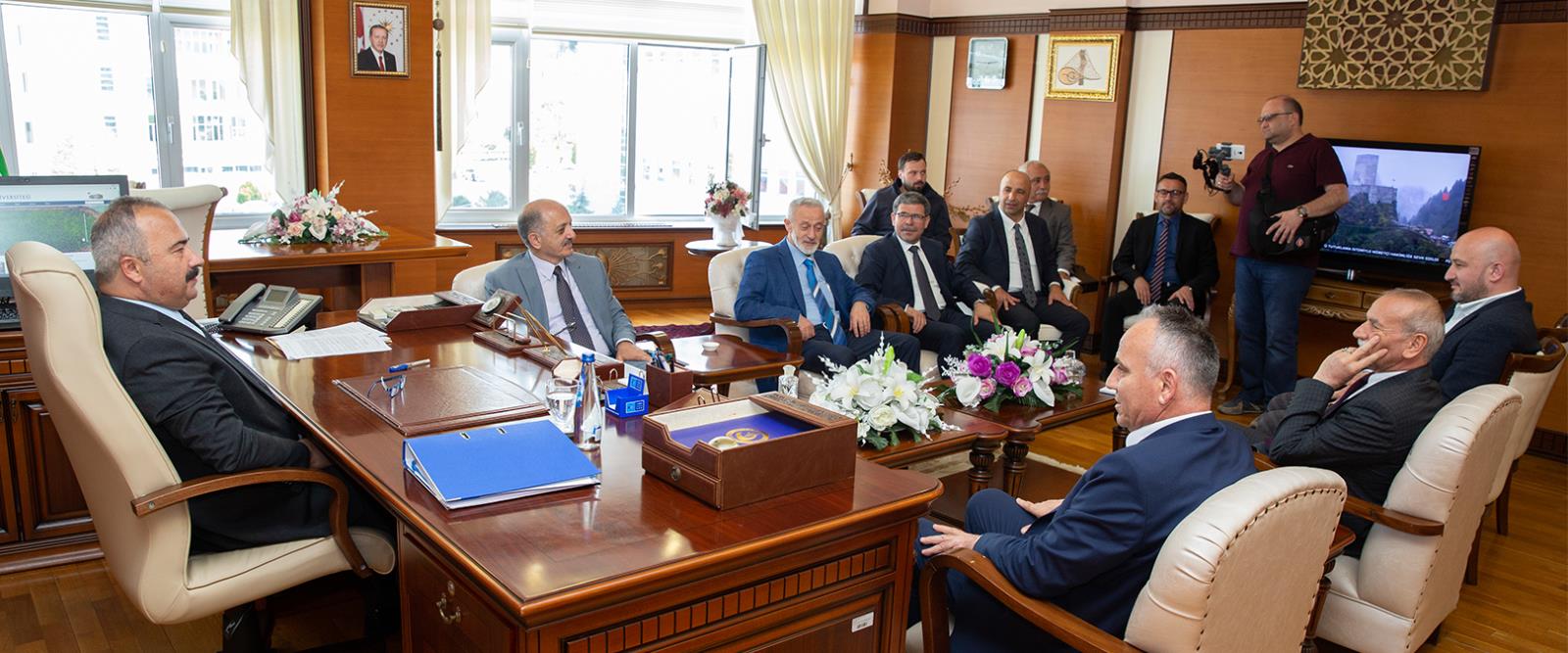 Gündeme ilişkin konuların ele alındığı ziyaretten duyduğu memnuniyeti dile getiren Rektörümüz, ayrıca; yakın zamanda Giresun Federasyonu Genel Başkanlığına gelen Muhterem Memiş’i de yeni görevi için tebrik ederek başarı dileklerini iletti.