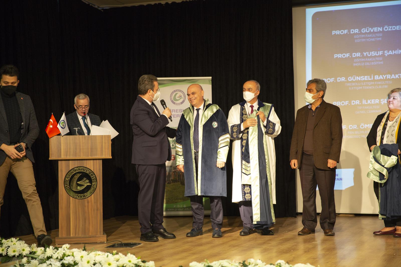 Açılış töreninde daha sonra, 2019 yılından bu yana öğretim üyesi kadrolarına atanan yaklaşık 300 öğretim üyesine “profesörlük”, “doçentlik” ve “doktor öğretim üyesi” cübbeleri giydirildi.