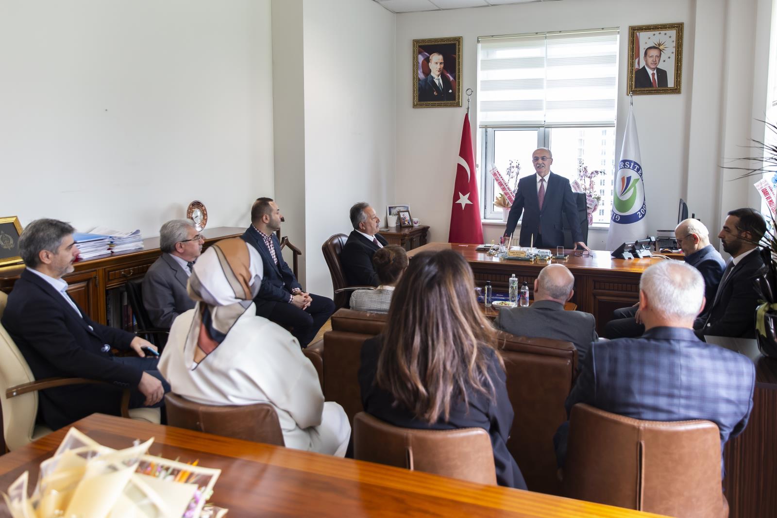 Rektör Yardımcıları Prof. Dr. Güven ÖZDEM, Prof. Dr. Hüseyin ŞAHİN, Prof. Dr. Emel UZUNOĞLU, Rektör Danışmanları Prof. Dr. Eren BAŞ ve Doç. Dr. Seda Nur ATASOY ile daire başkanlarının hazır bulunduğu devir teslim töreni, karşılıklı iyi dilek temennileri ve hatıra fotoğrafı çekimi ile sona erdi.