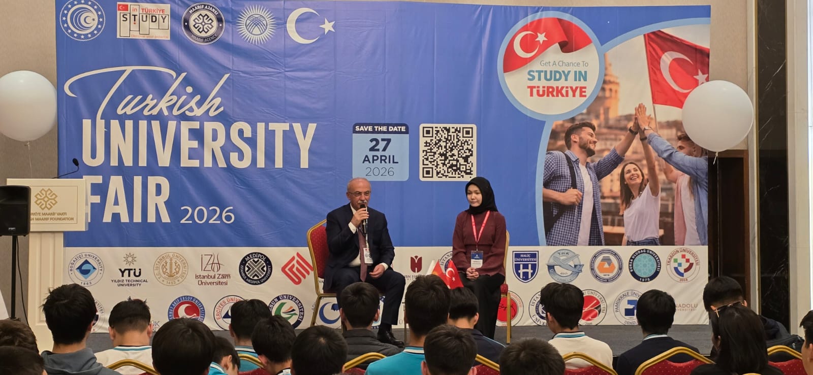 Maarif Ajansı tarafından, Türkiye'deki yükseköğretim kurumlarını yurt dışındaki öğrencilere tanıtmak, Türkiye'nin eğitim potansiyelini uluslararası alanda görünür kılmak ve yabancı öğrenci sayısını artırmak amacıyla düzenlenen fuarın açılış programına Üniversitemiz adına Rektörümüz Prof. Dr. Yılmaz CAN ile Uluslararası Öğrenci Ofisi Koordinatörü Öğr. Gör. Abdullah DEMİR, Kırgızistan Eğitim ve Bilim Bakan Yardımcısı Albert MAHMETKULOV, Türkiye'nin Bişkek Büyükelçisi Mekin Mustafa Kemal ÖKEM, TMV Mütevelli Heyeti Başkanvekili Prof. Dr. Ahmet Emre BİLGİLİ, TMV Kırgızistan Temsilcisi Hüsnü BİRCAN ve Türkiye'den 11 üniversitenin rektörü katıldı.