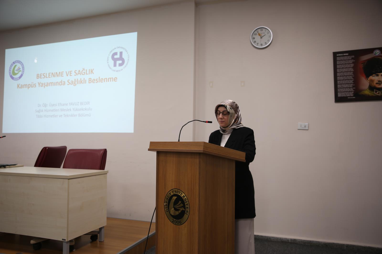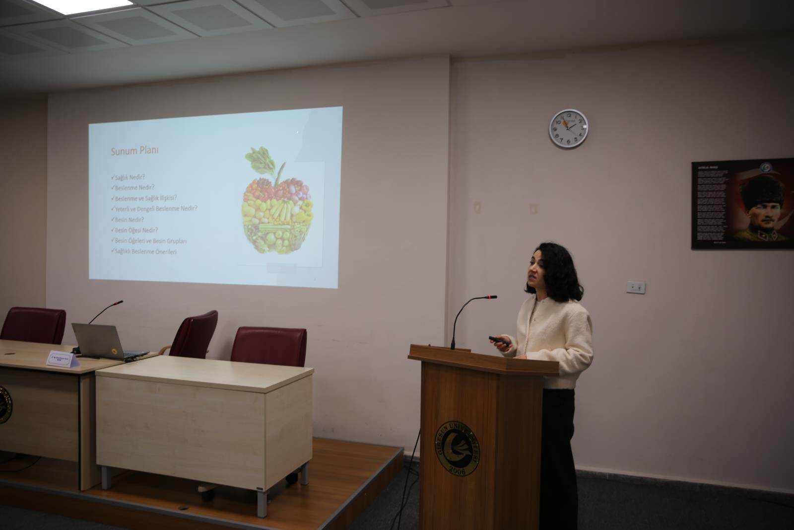 Giresun Üniversitesi Bilim ve Sağlık Topluluğu tarafından düzenlenen "Kampüs Yaşamında Sağlıklı Beslenme" başlıklı seminerde, öğrencilere ve akademik personele kampüs şartlarında doğru beslenmenin püf noktaları anlatıldı.