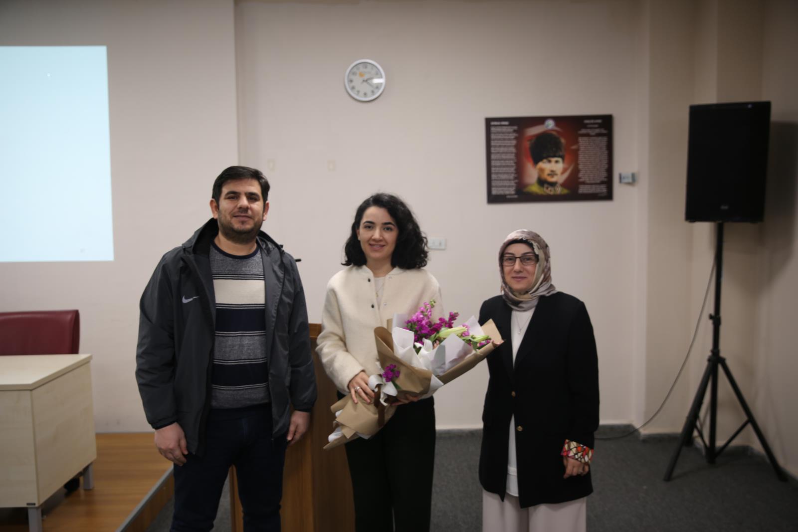 Soru-cevap bölümüyle sona eren seminerin kapanışında, katkılarından dolayı Dr. Öğretim Üyesi Efsane Yavuz Bedir’e teşekkür belgesi takdim edildi. Belgeyi, Sağlık Hizmetleri Meslek Yüksekokulu Tıbbi Hizmetler ve Teknikler Bölüm Başkanı Prof. Dr. Halil Gökçe verdi.