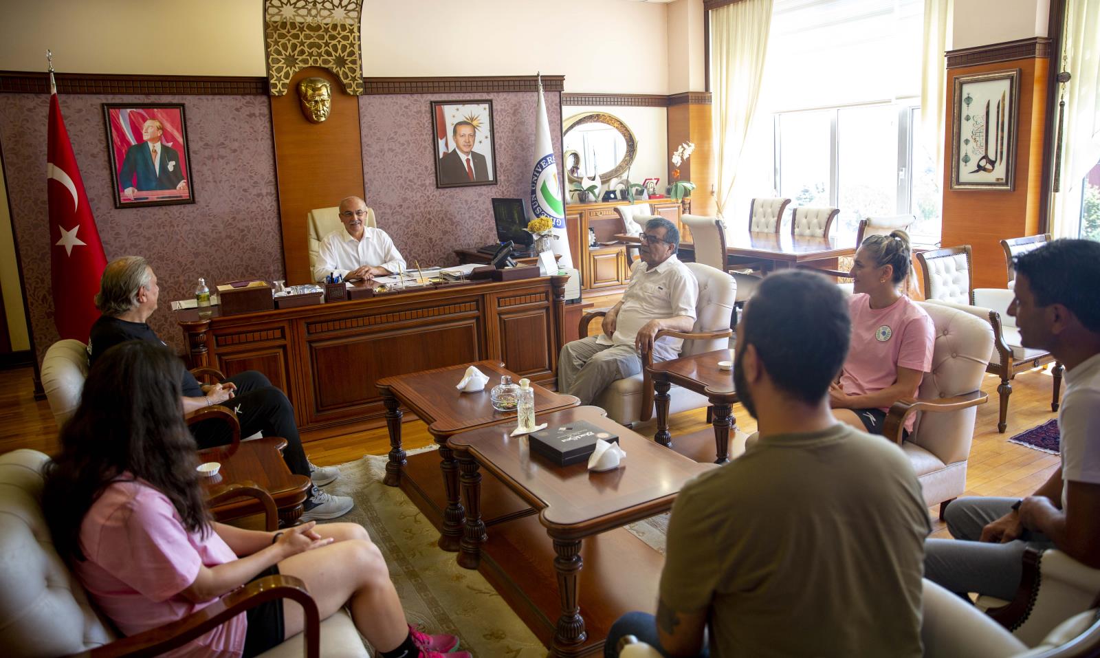 Spor Bilimleri Fakültesi Dekanı Prof. Dr. Mehmet Türkmen’in de hazır bulunduğu ziyarette, Türkiye Kadınlar Hentbol Süper Liginde ve Avrupa Kupasında İlimizi temsil eden Sporcularımızın performanslarını iyileştirmek ve sakatlanmalarını önlemek amacıyla yapılan çalışmalar hakkında bilgi alan Rektörümüz, Avrupa Kupası ve Süper Lig müsabakalarında kendilerine başarılar diledi.