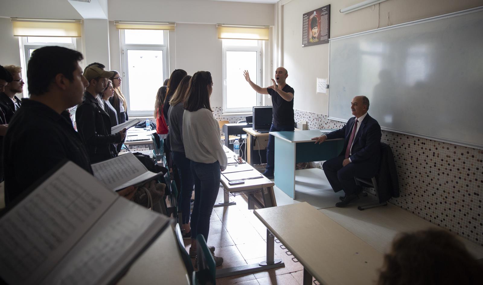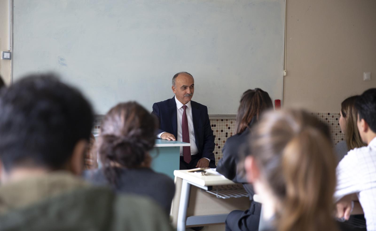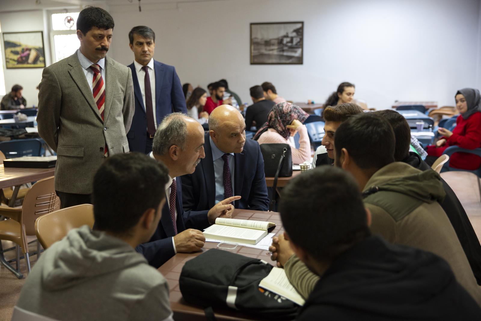 Sergilenen eserleri tek tek inceleyen Rektörümüz, öğrencilerden yaptıkları çalışmalar hakkında bilgi aldı. Serginin ardından Fakültede incelemelerde bulunan Prof. Dr. Yılmaz Can, dersliklerde ve kantinde öğrencilerle bir araya geldi. Kampüs içinde ve dışında yaşadıkları sorunları ve beklentilerini dinleyen Rektörümüz, Üniversite Yönetimi olarak birinci önceliklerinin öğrencilerin daha iyi koşullarda akademik eğitimlerini sürdürmeleri olduğunu belirterek çalışmalarına da bu doğrultuda yön verdiklerini söyledi.