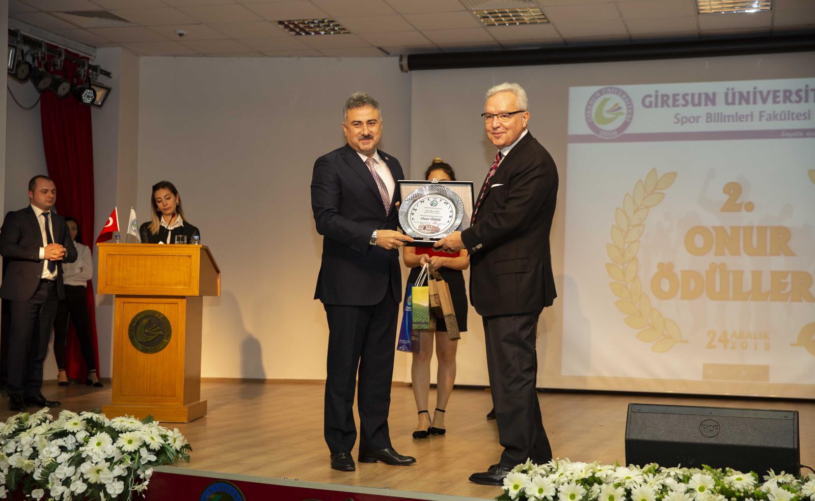 Üniversitemiz Spor Bilimleri Fakültesi tarafından bu yıl ikincisi düzenlenen ve spor dünyasında önemli başarılara/çalışmalara imza atmış Giresunlu hemşerilerimizin onurlandırıldığı “Onur Ödülleri” töreni, 24 Aralık 2018 Pazartesi günü, yoğun katılımla gerçekleştirildi.