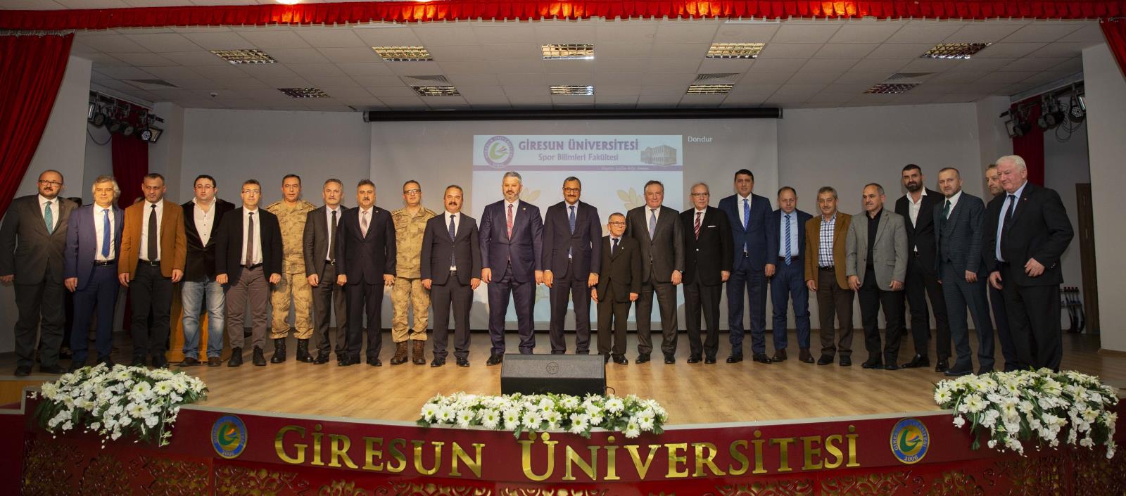 Rektörümüzün ardından kürsüye çıkan Giresun Valisi Harun Sarıfakıoğulları; “Büyük adımlarla ilerleyen Üniversitemiz genç bir üniversite ama gerek akademik alanlardaki başarı, gerekse sosyal kültürel ve sportif alanlarda oluşturduğu etkiyle sadece bölgemizin değil ülkemizin gözbebeği” diyerek konuşmasına başladı. Giresun’da 25 bin genç lisanslı sporcu olduğunu dile getiren Sarıfakıoğulları, Gençlik Hizmetleri ve Spor İl Müdürlüğü nezdinde çeşitli branşlarda sporculara destek verdiklerini, Giresun ve ülke sporuna yeni sporcular kazandırmak için çalışmalar yaptıklarını söyledi.