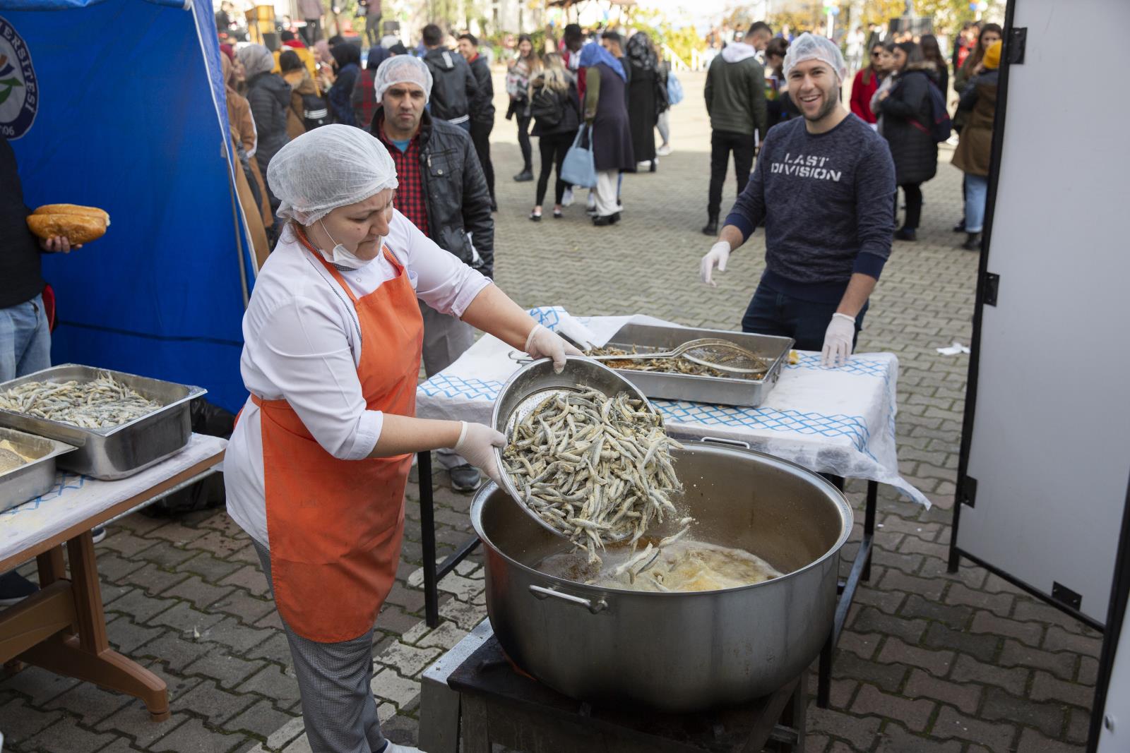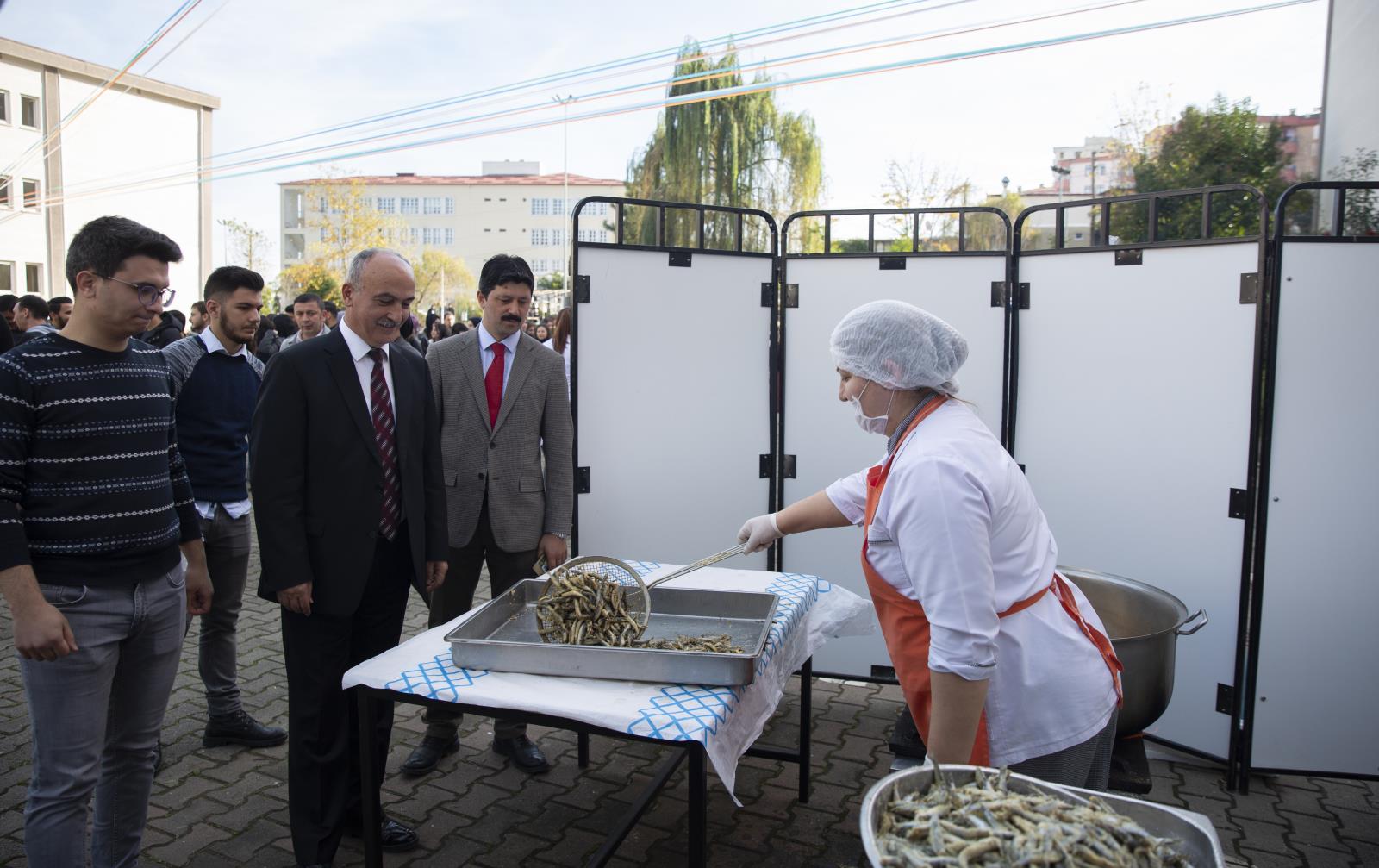 Yaklaşık 3 bin öğrencinin katıldığı ve 500 kilonun üzerinde hamsinin ızgaralarda pişirilerek öğrencilere dağıtıldığı şenlik alanını gezen Rektörümüz, müzik eşliğinde ikram edilen hamsilerin keyfini çıkaran öğrencilerle sohbet etti.