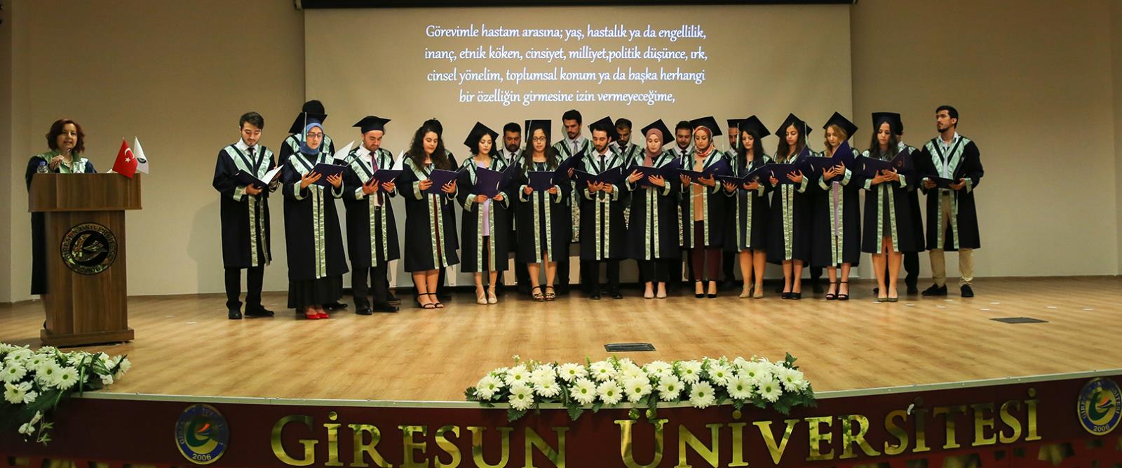 Yoğun katılımla gerçekleşen GRÜ Tıp Fakültesi mezuniyet törenine; Rektör Vekili Prof. Dr. Güven Özdem, Belediye Başkan Vekili Fahri Uzun, Tıp Fakültesi Dekanı Prof. Dr. Canan Çelik, kamu ve sivil toplum kuruluşlarının temsilcileri, üniversitemiz çalışanları ve öğrenci yakınları katıldı.