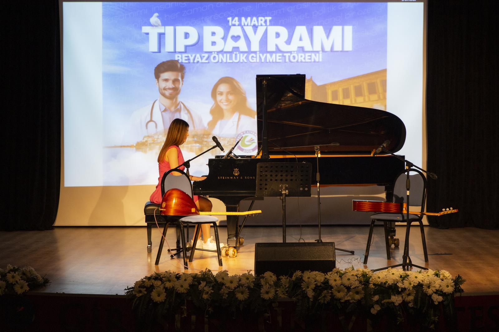 Saygı duruşu ve İstiklal Marşı’mızın okunmasıyla başlayan program, Tıp Fakültesi Beyaz Önlük Müzik Grubunun seslendirdiği eserlerle devam etti.