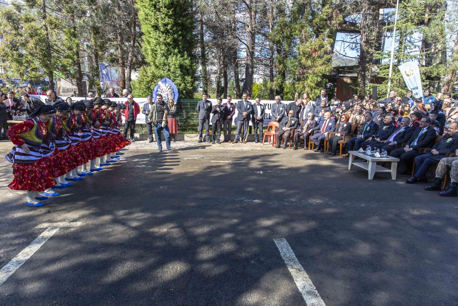 Rektörümüz Prof. Dr. Cevdet Coşkun’un yanı sıra Giresun Valisi Harun Sarıfakıoğulları, Cumhuriyet Başsavcısı Abdürrahim Alan, Üniversitemiz personeli ve öğrencilerin katıldığı program, Çotanak İlkokulu öğrencilerinin hazırladığı halk oyunları gösterisiyle başladı.