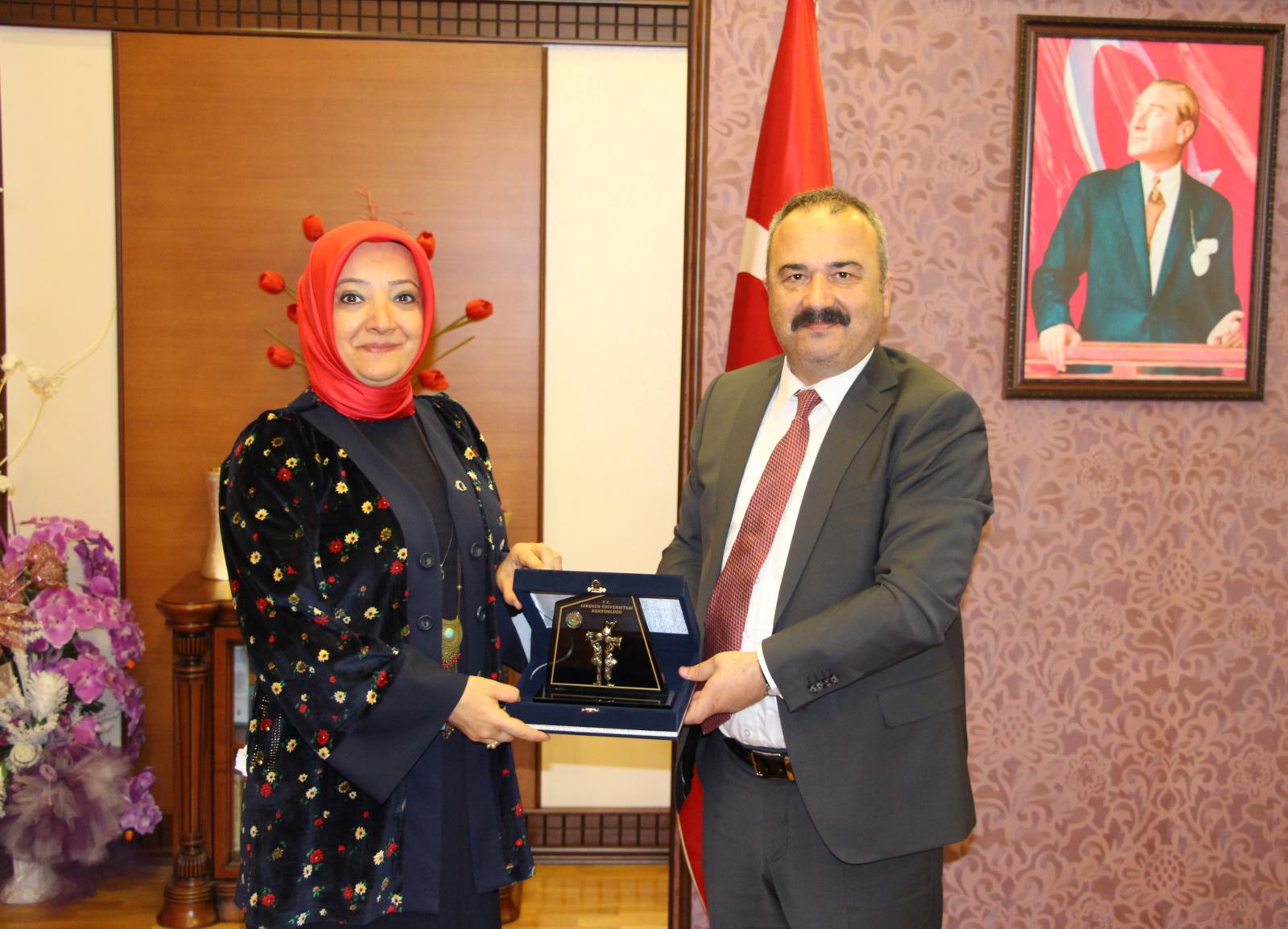 Program öncesi, Rektör Danışmanı ve KARASAM Müdürü Dr. Öğr. Üyesi Abbas Karaağaçlı eşliğinde Rektörümüz Prof. Dr. Cevdet Coşkun’u makamında ziyaret eden Fatma Sönmez, Ahmet Yesevi’nin hayatının konu edindiği programın düzenlenmesinden duyduğu memnuniyeti dile getirirken, beraberinde getirdiği, Ahmet Yesevi türbesinin yer aldığı fotoğrafı da Rektörümüze hediye etti.