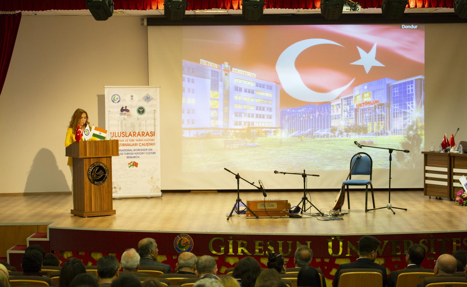 Serginin ardından, programın açılış konuşmasını Çalıştay Düzenleme Kurulu Başkanı Dr. Öğr. Üyesi Hilal Şahin yaptı. Konuşmasında Türklerin, Hint, Uzak Doğu ve Japon’larla olan etkileşimlerine değinerek, bu programda konuların daha derinlemesine inceleneceğini ifade etti. Daha sonra konuşmasını yapmak üzere, Rektör Danışmanı Dr. Öğr. Üyesi Abbas Karaağaçlı sahnedeki yerini aldı. Konuşmasında programın düzenlemesinde emeği geçen Türk Tarih Kurumuna ve Giresun Üniversitesine teşekkür eden Karaağaçlı, bu programın üniversitemiz öğrencileri için çok önemli yararlar sunacağını sözlerine ekledi.
