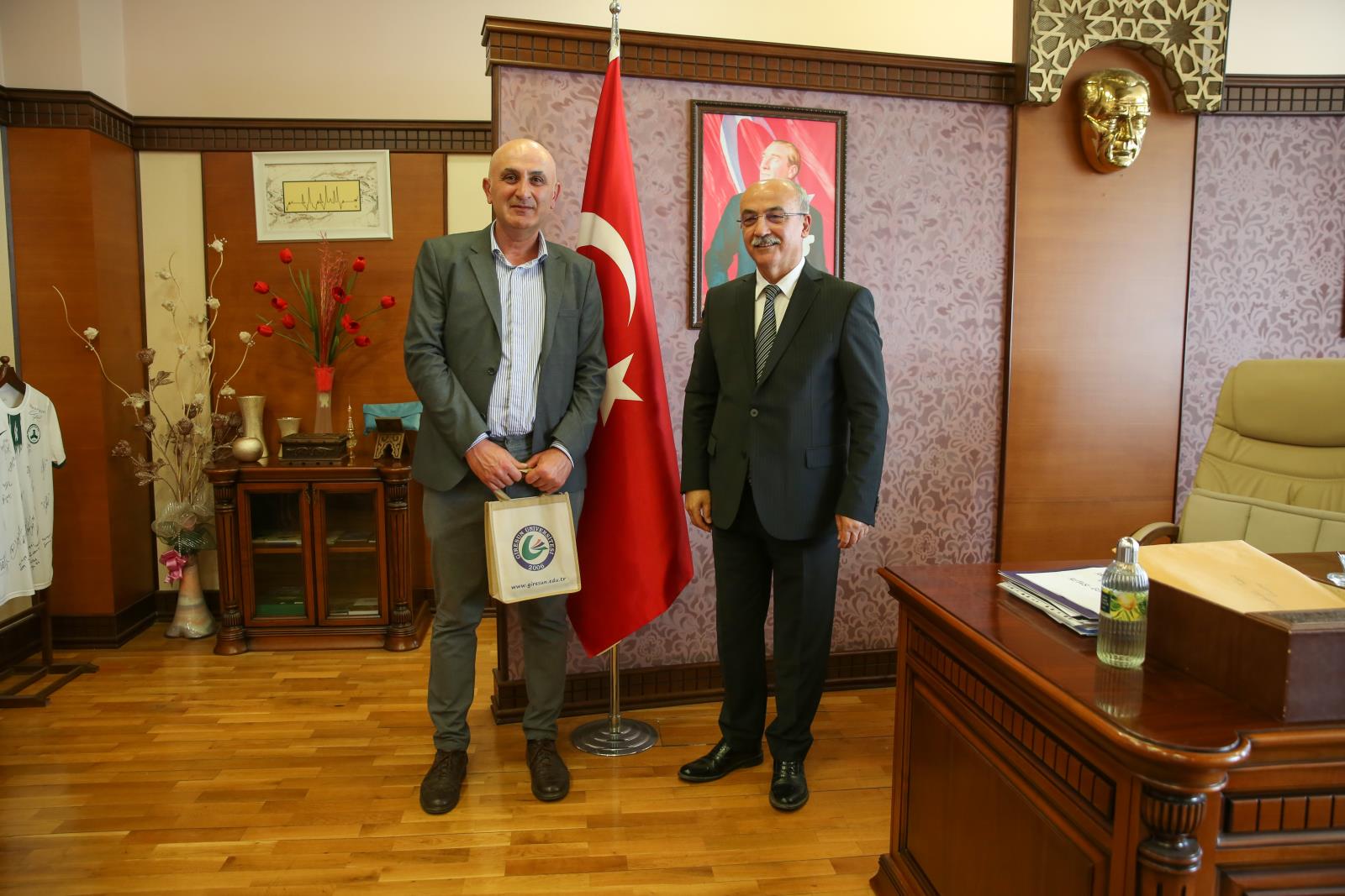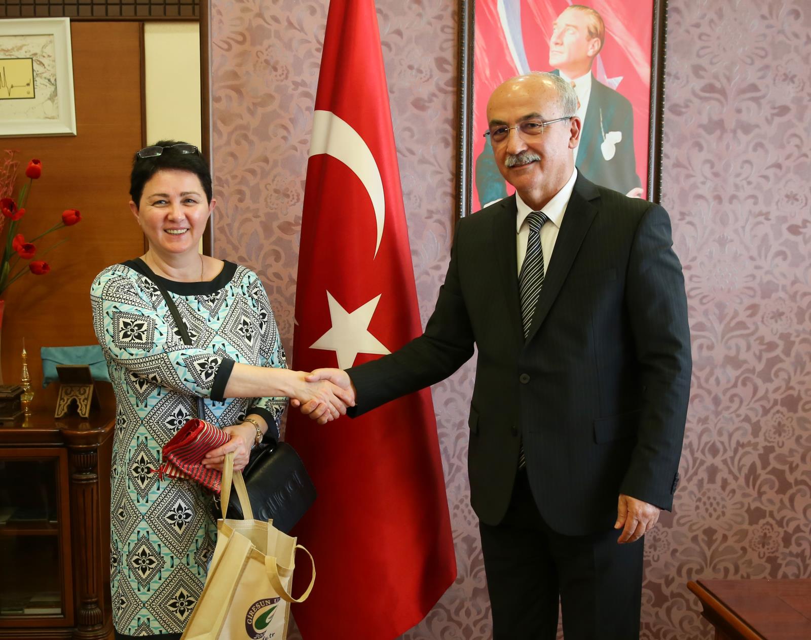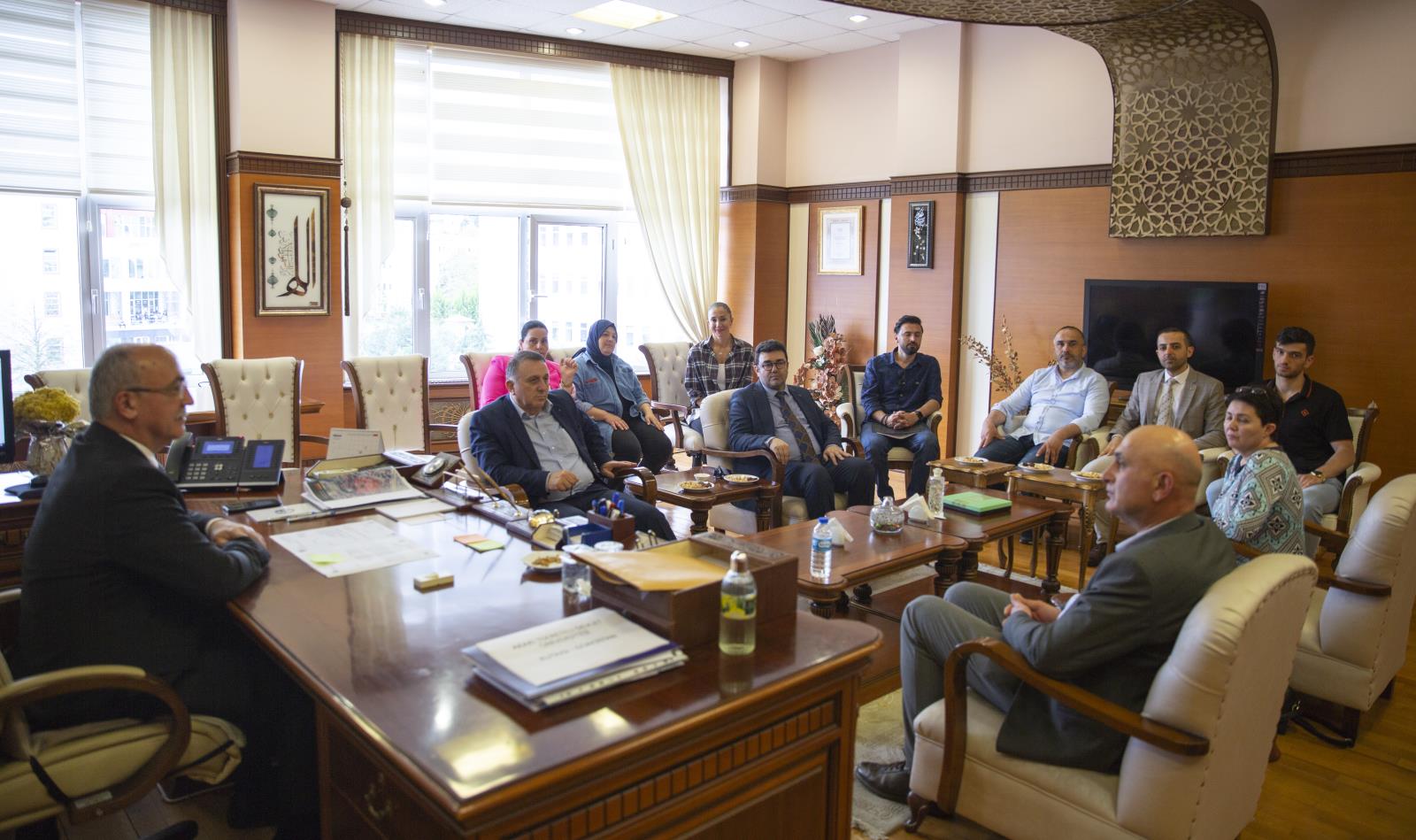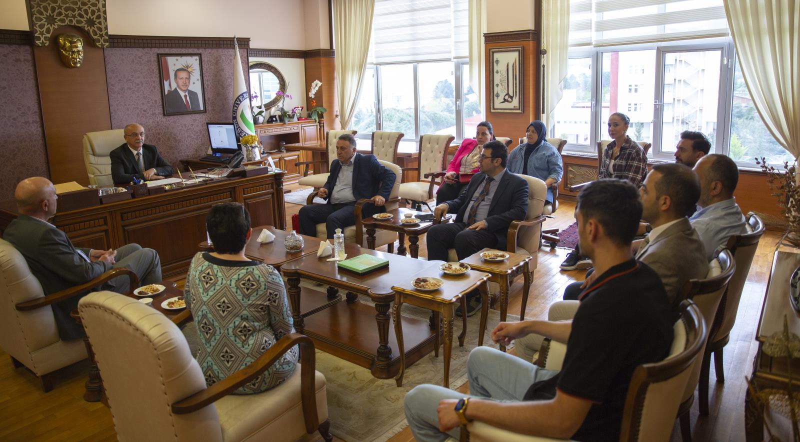 Konferansın ardından Üniversitemiz yönetimi ile görüşen misafir heyet, ilk olarak Rektör Yardımcısı Prof. Dr. Hüseyin ŞAHİN ile bir araya geldi. Son olarak Rektörümüz Prof. Dr. Yılmaz CAN ile görüşen heyet üyeleri, temasları süresince kendilerine gösterilen misafirperverlikten ötürü, başta Rektörümüz olmak üzere Giresun Üniversitesi ailesine teşekkür ettiler.