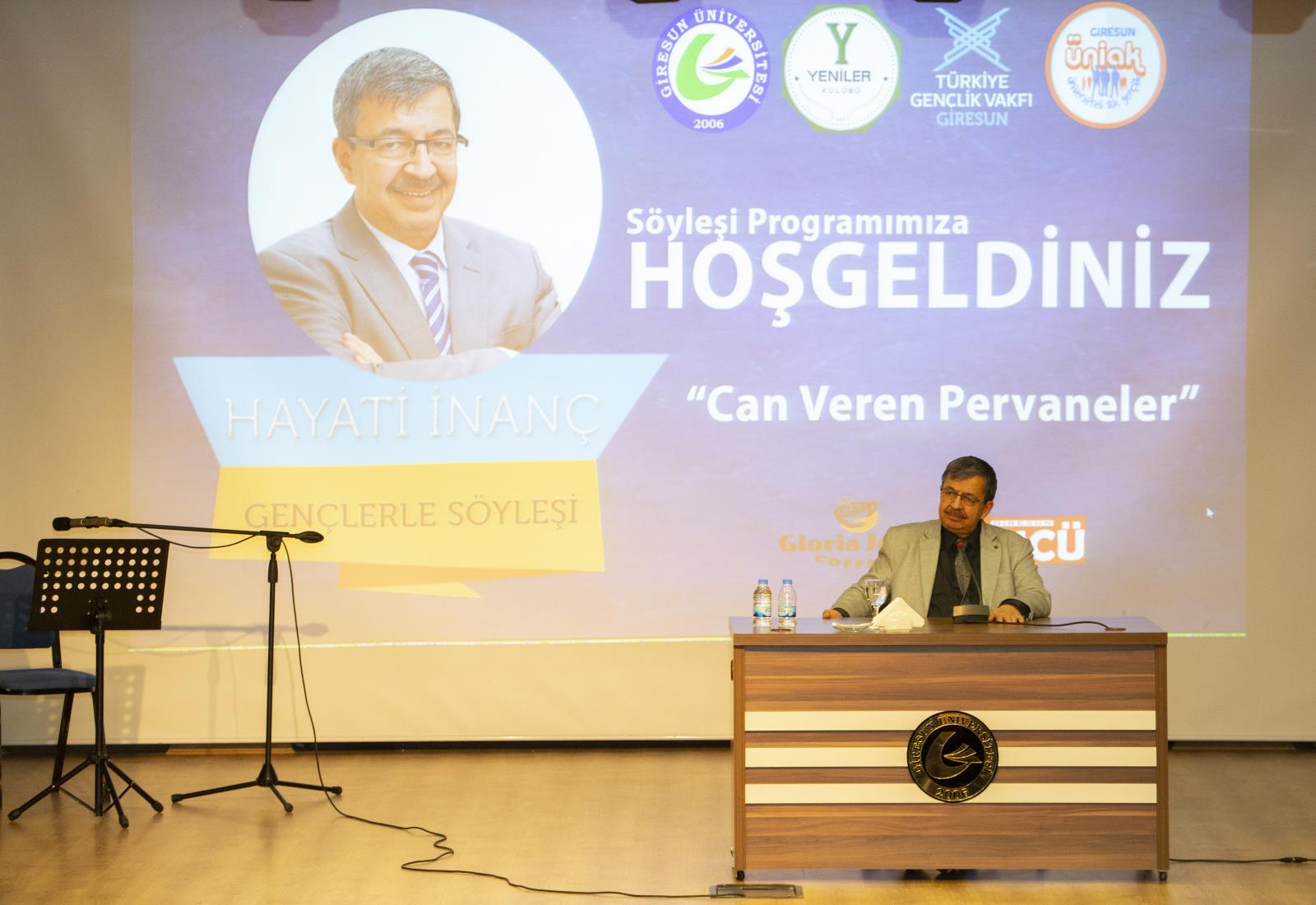 TRT’de “Can Veren Pervaneler” adlı programı hazırlayıp sunan Hayati İnanç, yine aynı başlıkla gerçekleştirdiği söyleşi ile öğrencilere hayat tecrübelerini aktardı. Şehit Ömer Halisdemir Konferans Salonunda, nüktedan anlatımıyla öğrencilere hitap eden İnanç, yer yer Divan Edebiyatından okuduğu beyitlerle ve kendi yaşamından verdiği örneklerle programa renk kattı.