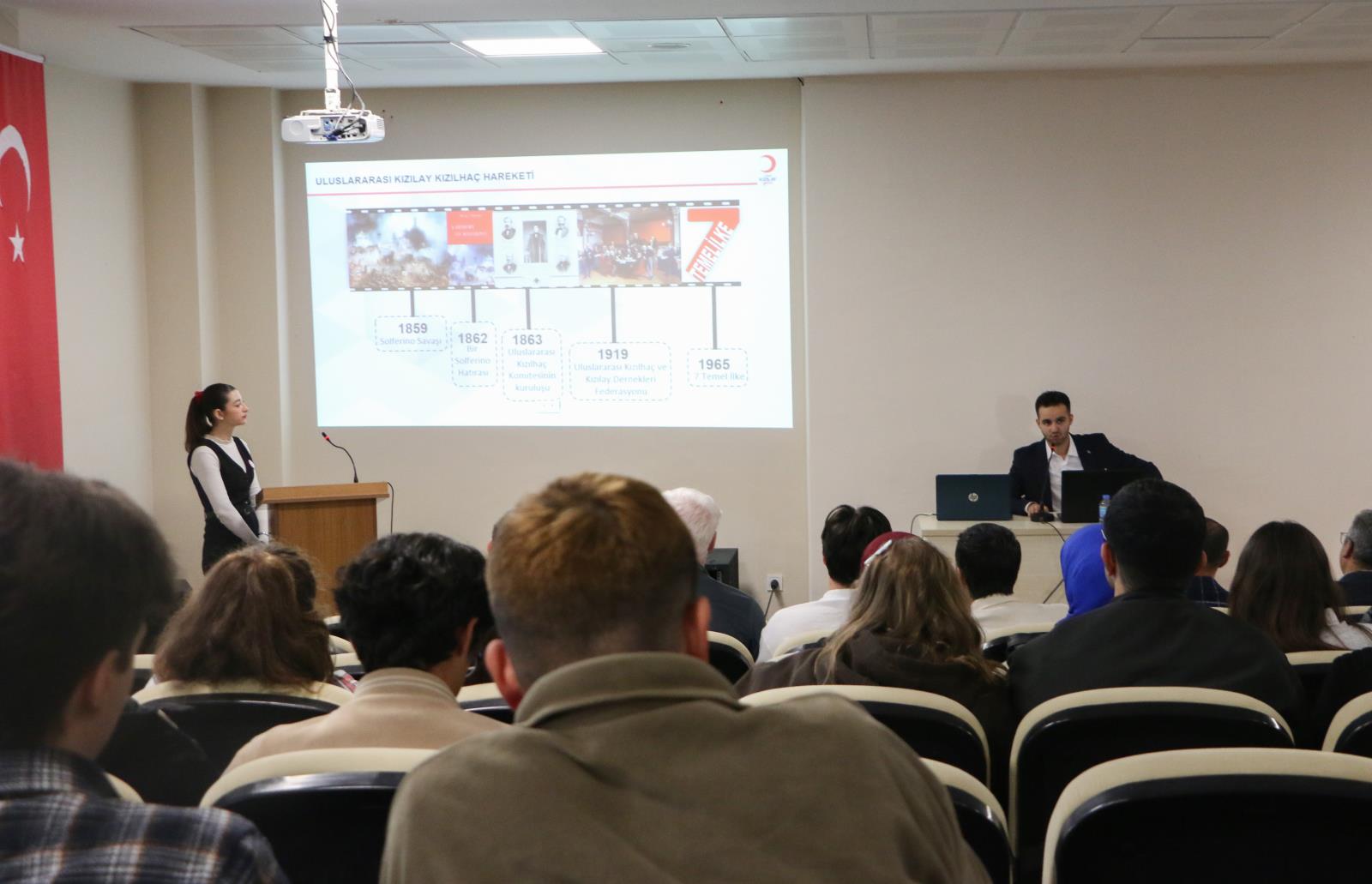 Konferans, saygı duruşunun ve İstiklal Marşı'nın ardından Hakkı Büyüksofuoğlu’nun Kızılay ve Giresun’daki Genç Kızılay yapılanması hakkında bilgilendirme konuşması ile başladı. Devamında ise Emin Asungur Hilal-i Ahmer ‘den Türk Kızılay’ına isimli sunumuunu gerçekleştirdi. Hilal-i Ahmer’in nasıl ve ne tür süreçler ile kurulduğunun ve günümüzde Kızılay’ın hangi çalışmaları yürüttüğü ve üniversite topluluğu ile gerçekleştirmeyi amaçladığı projelere değinildi.