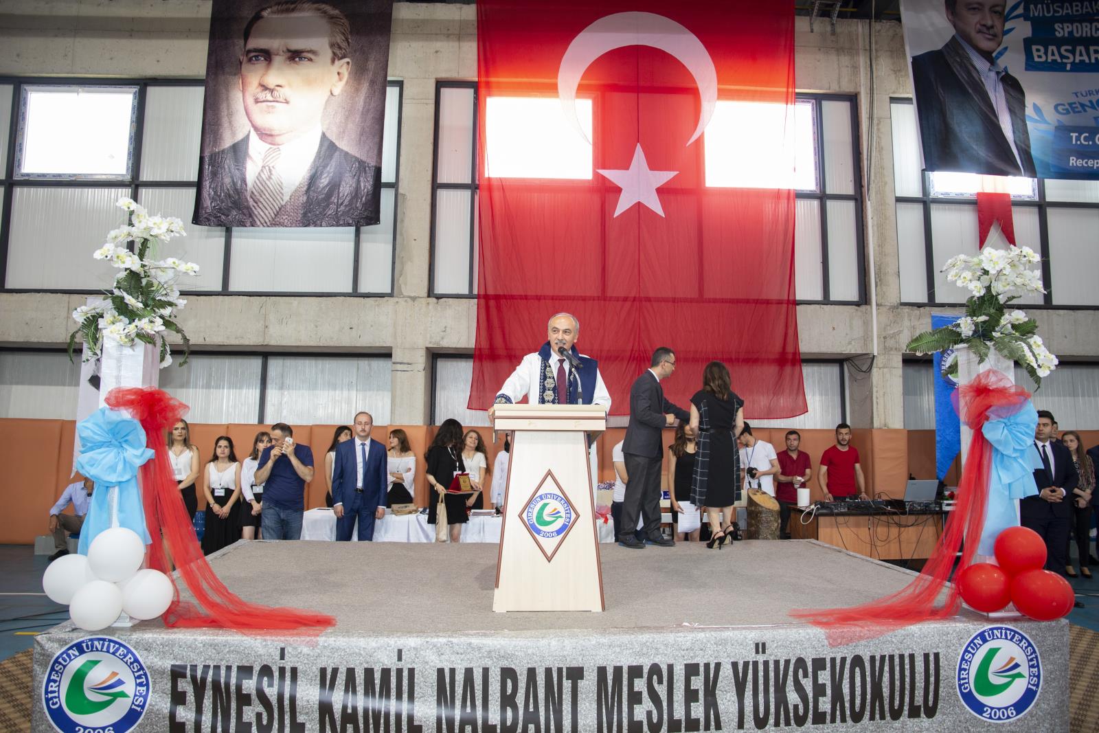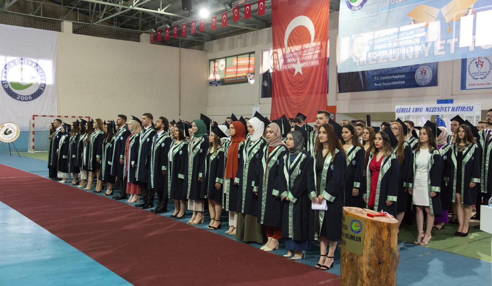 Görele kapalı spor salonunda yapılan tören, saygı duruşu ve İstiklal Marşı’nın okunmasıyla başladı. Okul birincisi Gül Kurtçuoğlu’nun mezun öğrenciler adına yaptığı konuşmasının ardından Yüksekokul Müdürü Dr. Öğr. Üyesi Hayrettin Karadeniz bir tebrik konuşması yaptı.