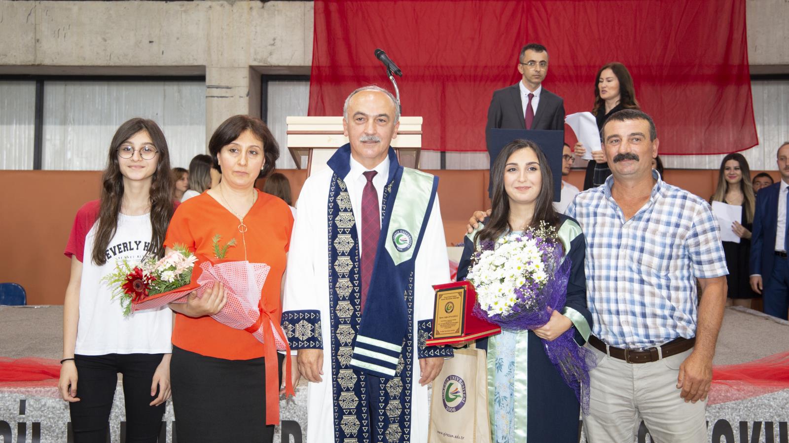 Görele Kaymakamı Erdoğan Turan Ermiş ve Rektörümüz Prof. Dr. Yılmaz Can’ın konuşmalarının ardından dereceye girenlere ödüllerinin verilmesiyle devam eden programda, okul birincisi Gül Kurtçuoğlu mezuniyet kütüğüne plaket çaktı.