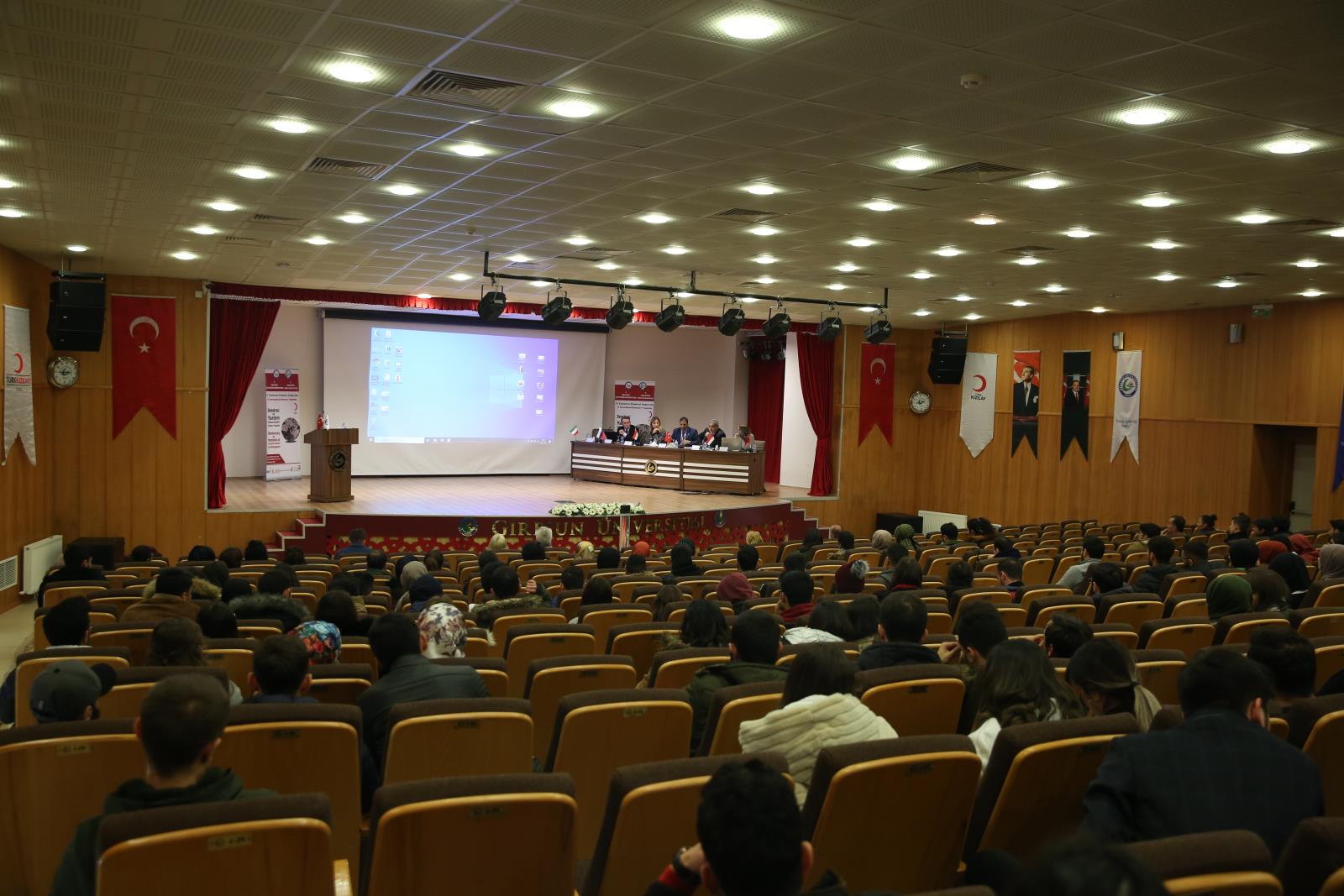 Prof. Dr. Betül Karagöz Yerdelen’in başkanlığında düzenlenen oturumda ilk olarak Kızılay Giresun Şube Başkanı Murat Cansız kürsüye çıktı. “Türk Kızılayı; ihtiyaç anında dayanışmanın, ızdırap anında şefkatin, farklılıklar karşısında hoşgörünün ve savaşın en kızgın anında insancılığın, tarafsızlığın ve barışın simgesidir” diyerek sözlerine başlayan Cansız, Kızılay olarak Giresun genelinde yaptıkları çalışmaları aktardı.