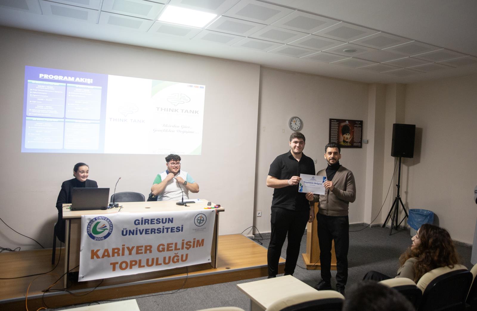 Giresun Üniversitesi Kariyer Gelişim Topluluğu, öğrencilerin kariyer farkındalığını artırmaya ve girişimcilik ekosistemine yönelik bilinç kazandırmaya yönelik etkinliklerine önümüzdeki süreçte de devam edeceğini belirtti.