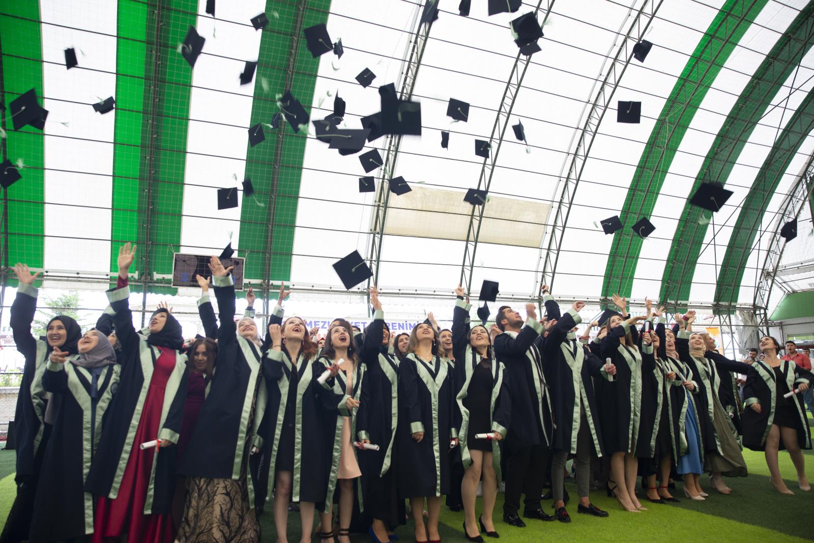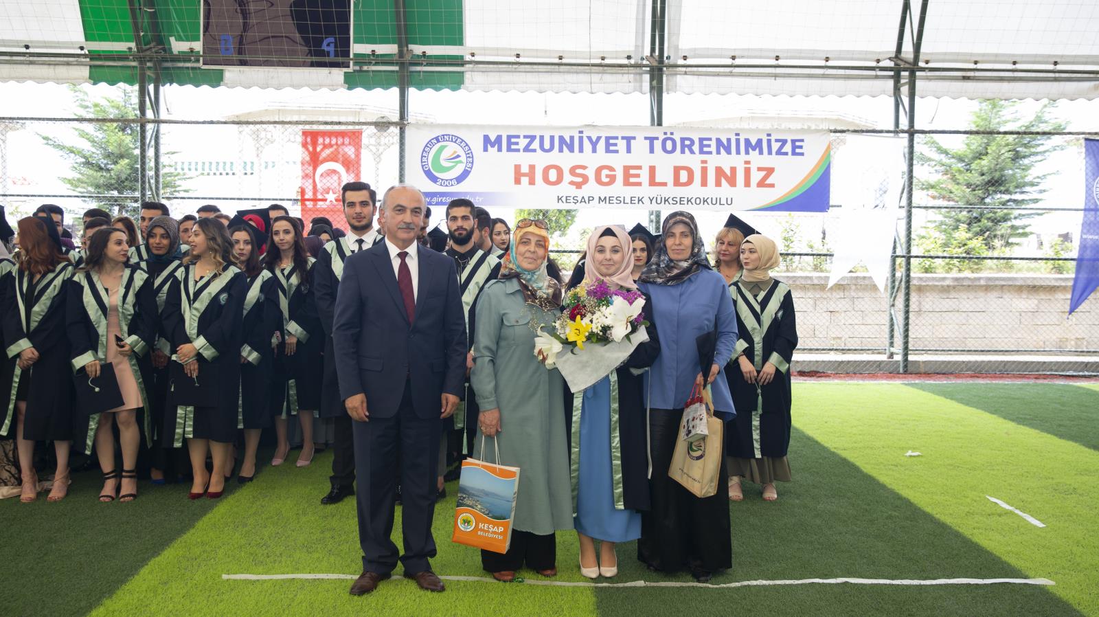 Keşap Meslek Yüksekokulu mezuniyet töreni, mezun öğrencilerin hep birlikte kep atmalarıyla sona erdi.
