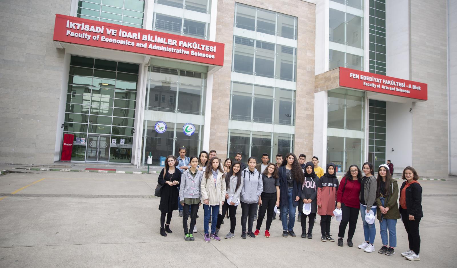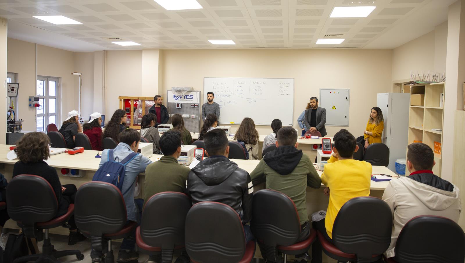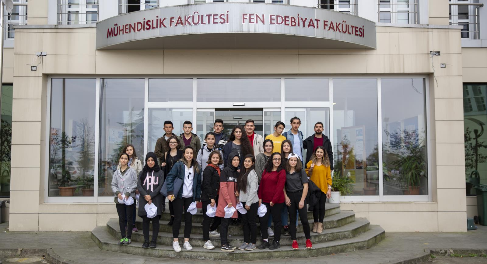 Okul öğretmenleri eşliğinde Üniversitemize gelen öğrencilerin, meslek seçimlerine ve kariyer planlarına yol göstermesi amacıyla düzenlenen gezi, Üniversitemiz Basın Koordinatörlüğü çalışanlarından Mehmet Söylemez ve Ömer Karataş tarafından yapılan genel bilgilendirmenin ardından Mühendislik fakültesiyle başladı.