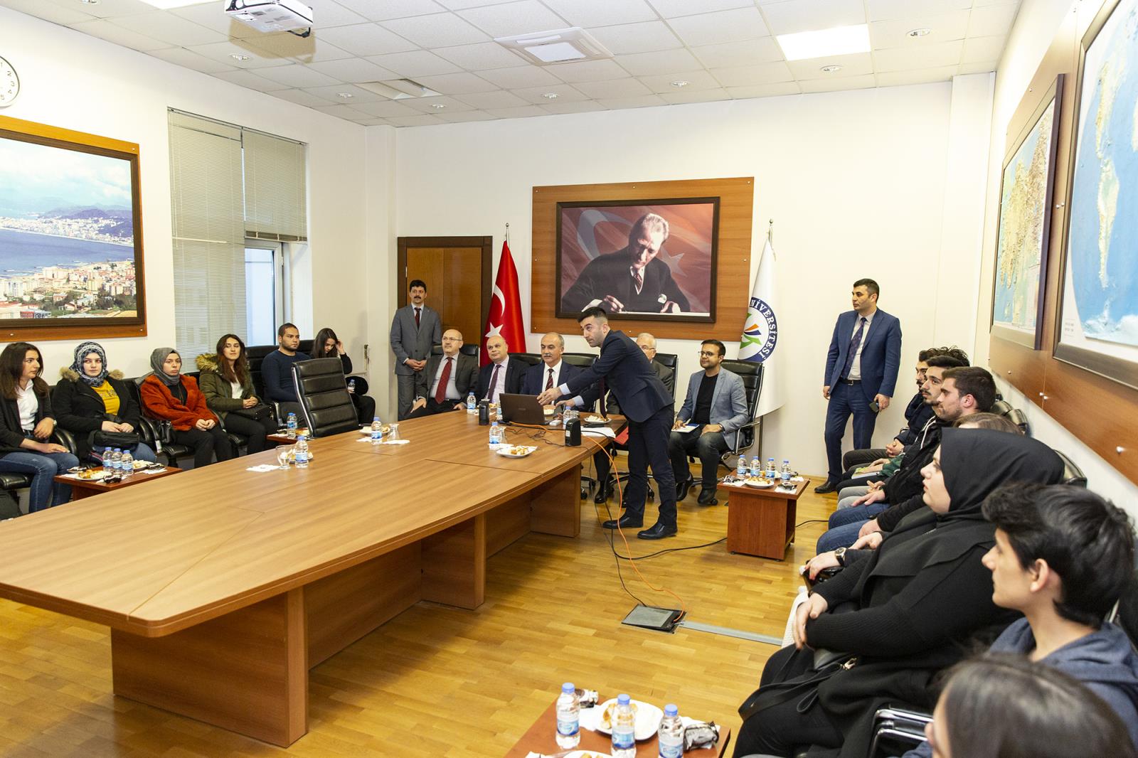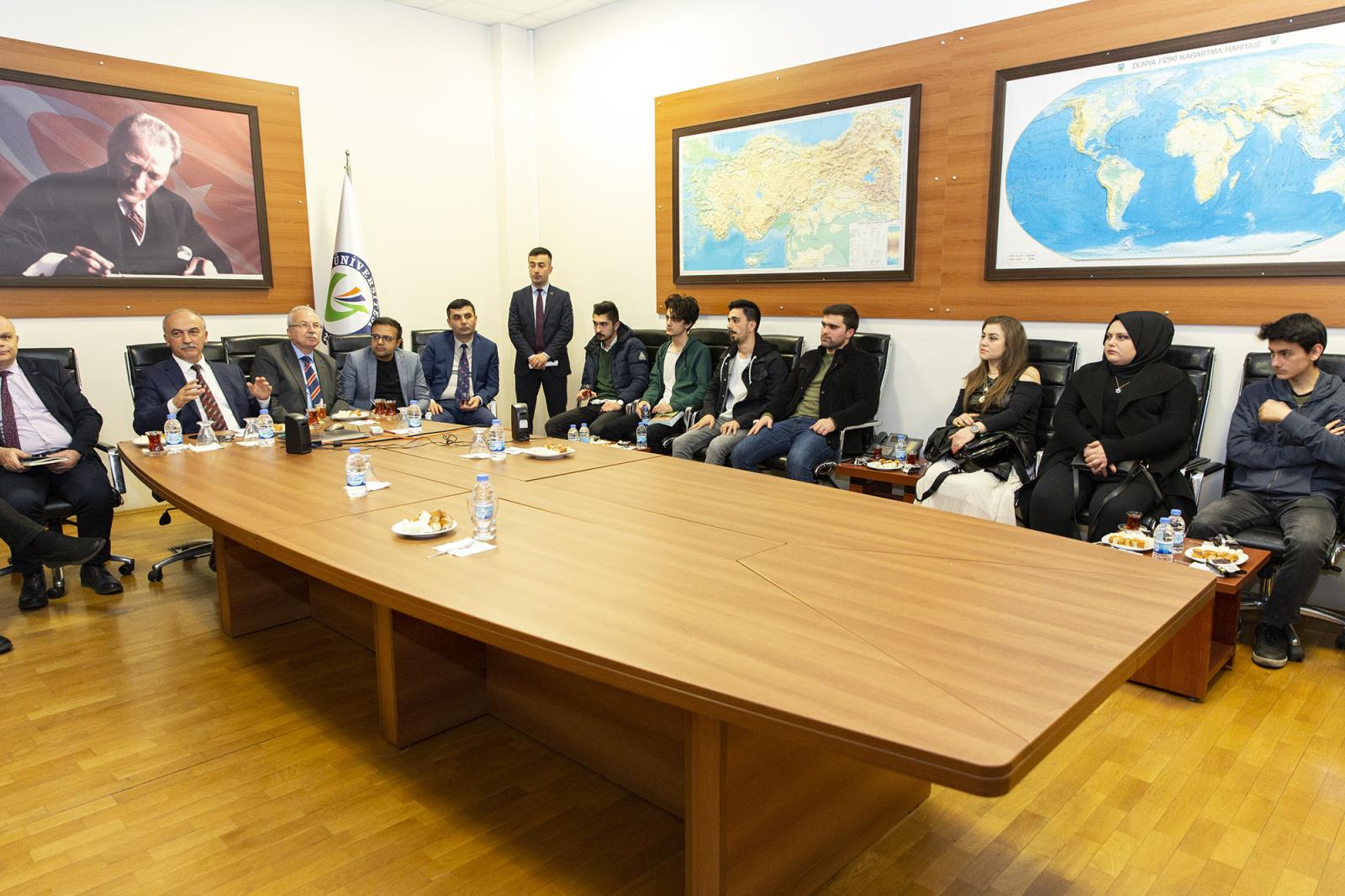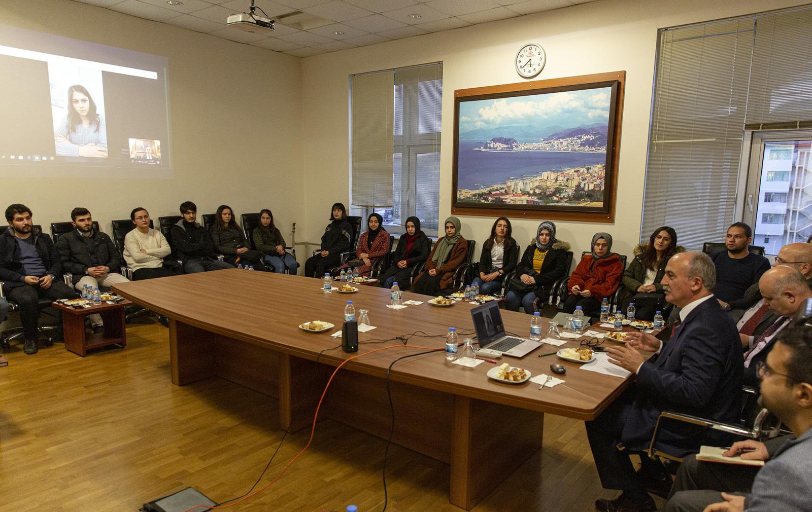 Giresun Üniversitesi Rektörlük binasında gerçekleştirilen toplantıda Rektörümüz, Üniversitemiz ile ilgili gelecek dönemde hayata geçirilmesi düşünülen plan ve projeleri anlattıktan sonra öğrencilerin görüş ve önerilerini dinledi.