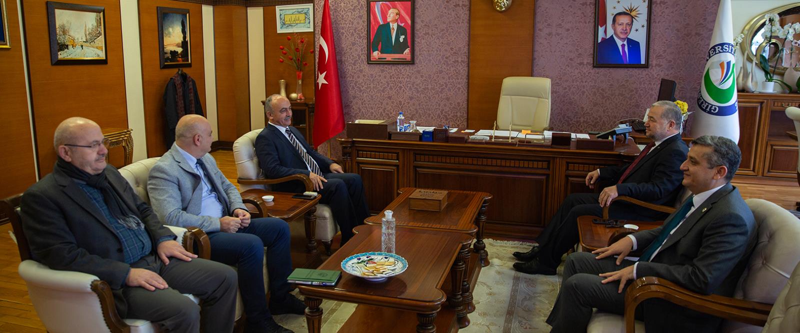 Gündeme dair konuların da ele alındığı ziyarette Rektörümüze, Rektör Yardımcısı Prof. Dr. Güven Özdem ve Genel Sekreter Ahmet Tevfik Korkmaz eşlik ettiler.