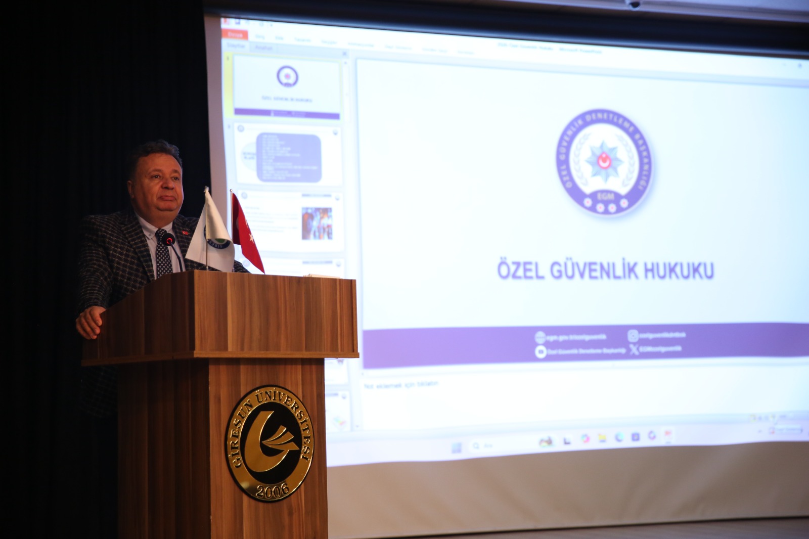 Program, Giresun Üniversitesi Şehit Ömer Halisdemir Konferans Salonu’nda yoğun katılımla düzenlendi. Eğitime, Emniyet Genel Müdürlüğü Özel Güvenlik Denetleme Başkanlığı’ndan Polis Başmüfettişi 1. Sınıf Emniyet Müdürü Çağatay MANAV ile Polis Başmüfettişi 1. Sınıf Emniyet Müdürü Murat KIZMAZ katılarak bilgi ve tecrübelerini paylaştı.