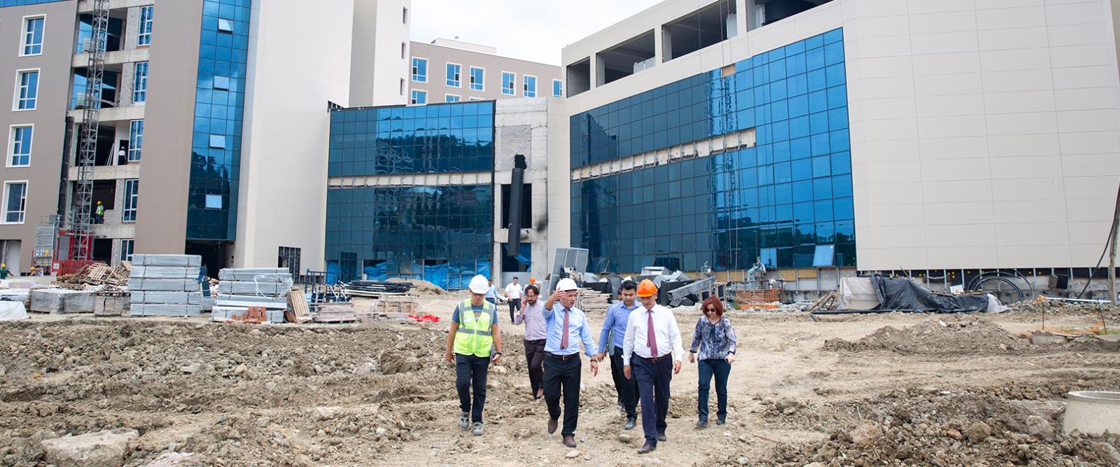 25 Haziran 2019 Salı günü, Tıp Fakültesi Dekanı Prof. Dr. Canan Çelik, İl Sağlık Müdürü Ahmet Bal, Giresun Üniversitesi Prof. Dr. A. İlhan Özdemir Eğitim ve Araştırma Hastanesi Başhekimi Doç. Dr. Kemal Uzun ve Genel Sekreter A. Tevfik Korkmaz eşliğinde inşaat alanına gelen Rektörümüz, yetkililerden yapılan çalışmalar hakkında bilgi aldı.