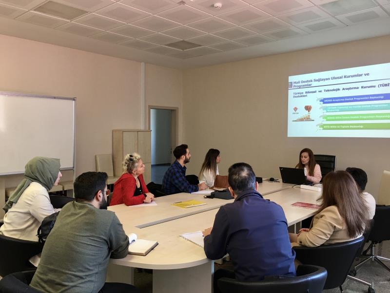 Proje Destek ve Yönetim Koordinatörlüğünden Öğr. Gör. Burcu AKKAYA ve Öğr. Gör. Ayben GÜL tarafından verilen eğitimde, öğretim elemanlarının proje başvurusu yapabilecekleri ulusal ve uluslararası fon kaynakları tanıtılarak, bu fon kaynaklarına nasıl ulaşılacağına ilişkin bilgiler aktarıldı. Bunun yanı sıra, söz konusu fon kaynaklarının başvuru koşulları, başvuru yöntemleri ve başvuru formları incelendi.