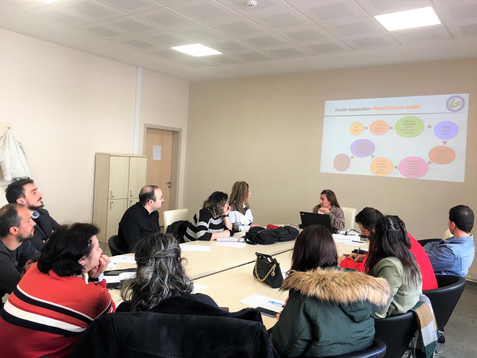 Proje Destek ve Yönetim Koordinatörlüğünden Öğr. Gör. Burcu AKKAYA ve Öğr. Gör. Ayben GÜL tarafından gerçekleştirilen eğitimde; ulusal ve uluslararası proje fon kaynakları, proje tanımı ve ilgili kavramlar, analiz aşamaları, planlama aşaması, proje bütçesinin hazırlanması vb. konular anlatılarak uygulamalı çalışmalar yapıldı.