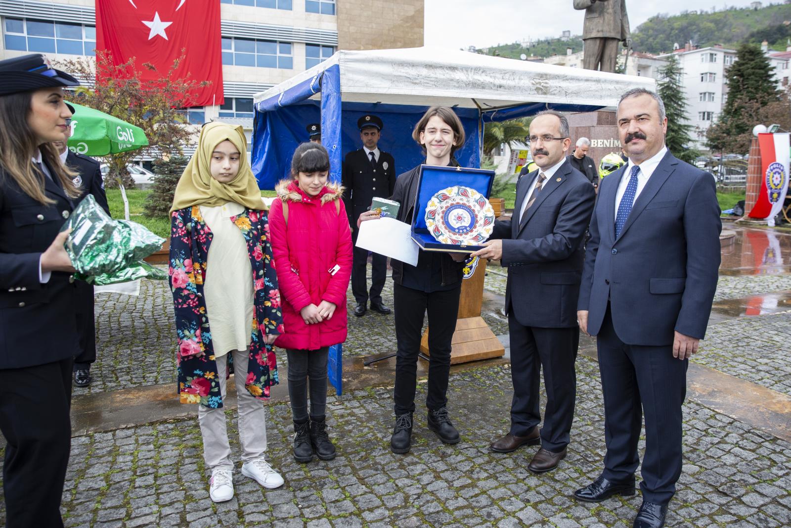 Programda konuşan Giresun Valisi Harun Sarıfakıoğulları’nın ardından, polis haftası nedeniyle ilk-orta ve liselerde düzenlenen kompozisyon, resim, şiir yarışmalarda dereceye giren öğrencilere ödüllerini Rektörümüz ve diğer protokol üyeleri verdi.