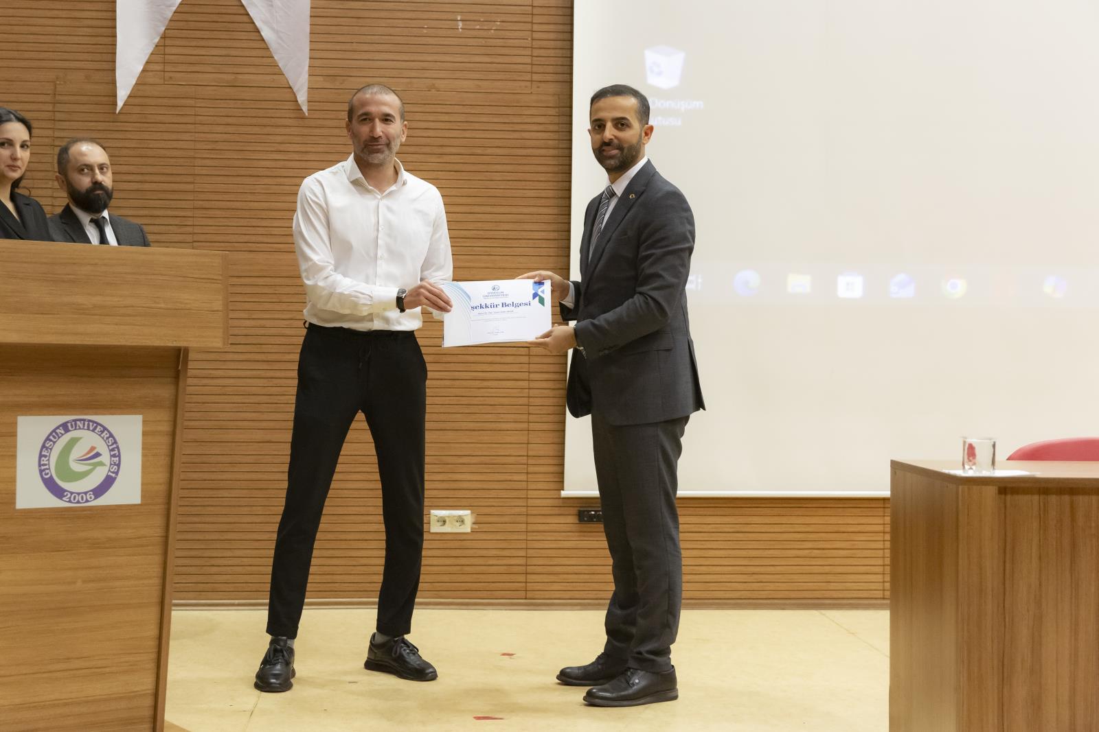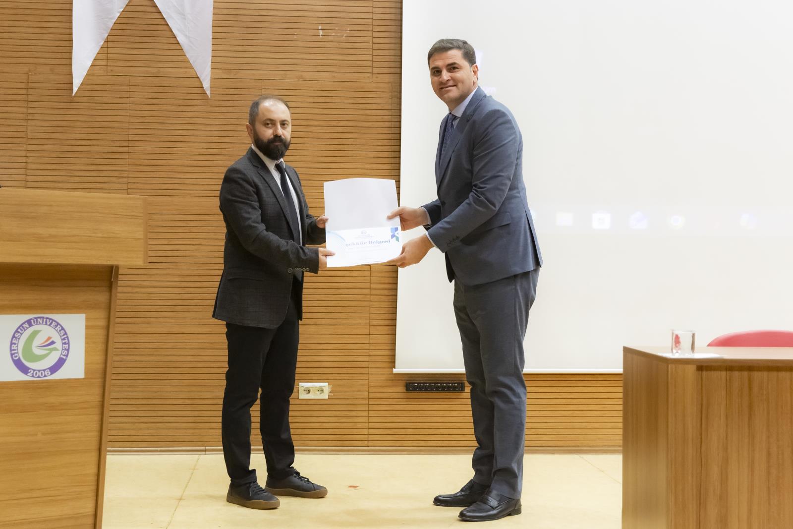 Törende ayrıca, TEKNOFEST Mavi Vatan Makale Yarışması’nda birincilik elde eden Doç. Dr. Yasin Söğüt’e plaket verildi. Yılın En Başarılı Genç Kotler Projesi'nde derece alan öğrencilerin danışmanı Halkla İlişkiler ve Tanıtım Bölümü öğretim elemanı Dr. Öğr. Üyesi Anıl Uğur Oğuzcan'a teşekkür belgesi verildi. Üniversitenin yeni tanıtım filmini hazırlayan Tirebolu İletişim Fakültesi akademisyenleri Dr. Öğr. Üyesi Gökhan Toptepe, Dr. Öğr. Üyesi Elif Çanğa Bayer ve Dr. Öğr. Üyesi Zafer Akar’a ise teşekkür belgeleri protokol üyeleri tarafından takdim edildi.