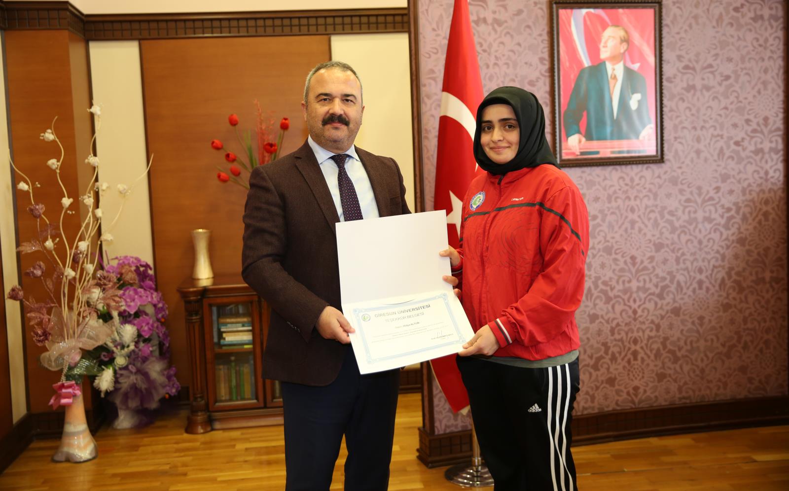 Giresun Üniversitesinin spor alanında kazandığı başarılara bir yenisinin daha eklendiğini ve bunun memnuniyet verici olduğunu dile getiren Rektörümüz, gelecek sezon için takımlara başarı diledi.