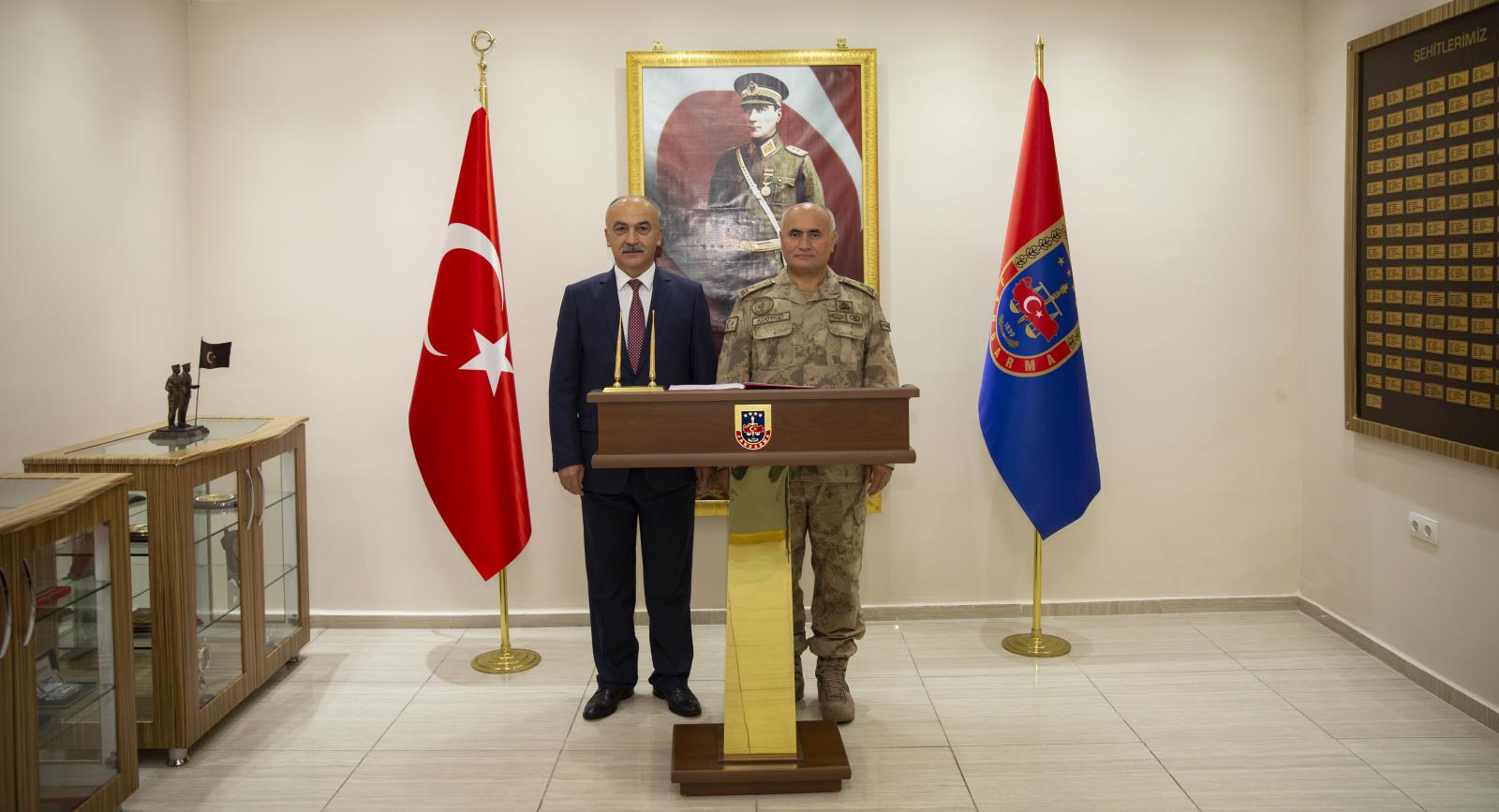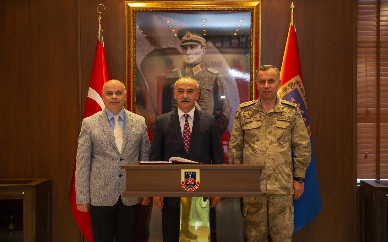 İl Jandarma Komutanı J. Alb. Muhammet Sevinç ile yaptığı görüşmenin ardından Jandarma Bölge Komutanlığına geçen Rektörümüz, burada da Jandarma Bölge Komutanı Tuğgeneral Hasan Koçyiğit ile bir araya geldi. Bölge Komutanlığı Ziyaret Defterini imzalayan Prof. Dr. Yılmaz Can, Barış Pınarı Harekâtı dolayısıyla Suriye’de operasyon düzenleyen Türk Silahlı Kuvvetleri adına Bölge Komutanını tebrik ederek askerlerimize muvaffakiyet diledi.