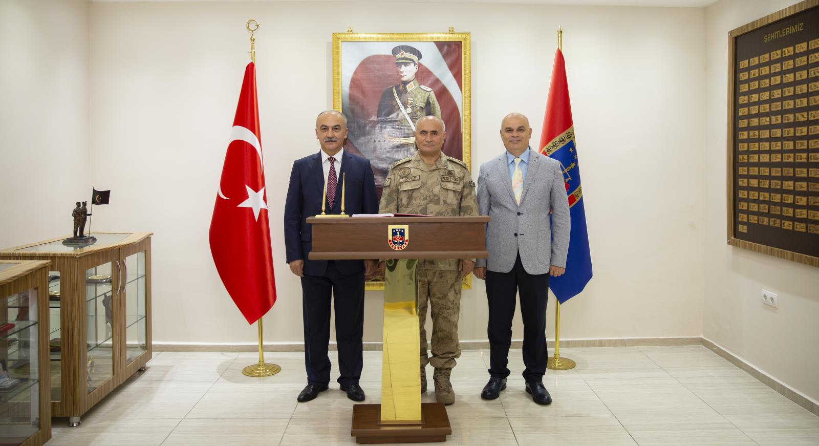 23 Ekim günü gerçekleşen ziyaret programı ise İl Jandarma Komutanlığı ile başladı. İl Jandarma Komutanı J. Alb. Muhammet Sevinç tarafından karşılanan Rektörümüz Prof. Dr. Yılmaz Can, günün anısına Birlik Ziyaret Defterini imzaladı. “Barış Pınarı Harekâtı” dolayısıyla sınır ötesinde görev yapan Mehmetçiği unutmayan Rektörümüz, başarılı operasyon dolayısıyla Türk Silahlı Kuvvetleri’ni en kalbi duygularla kutladığını ifade etti.