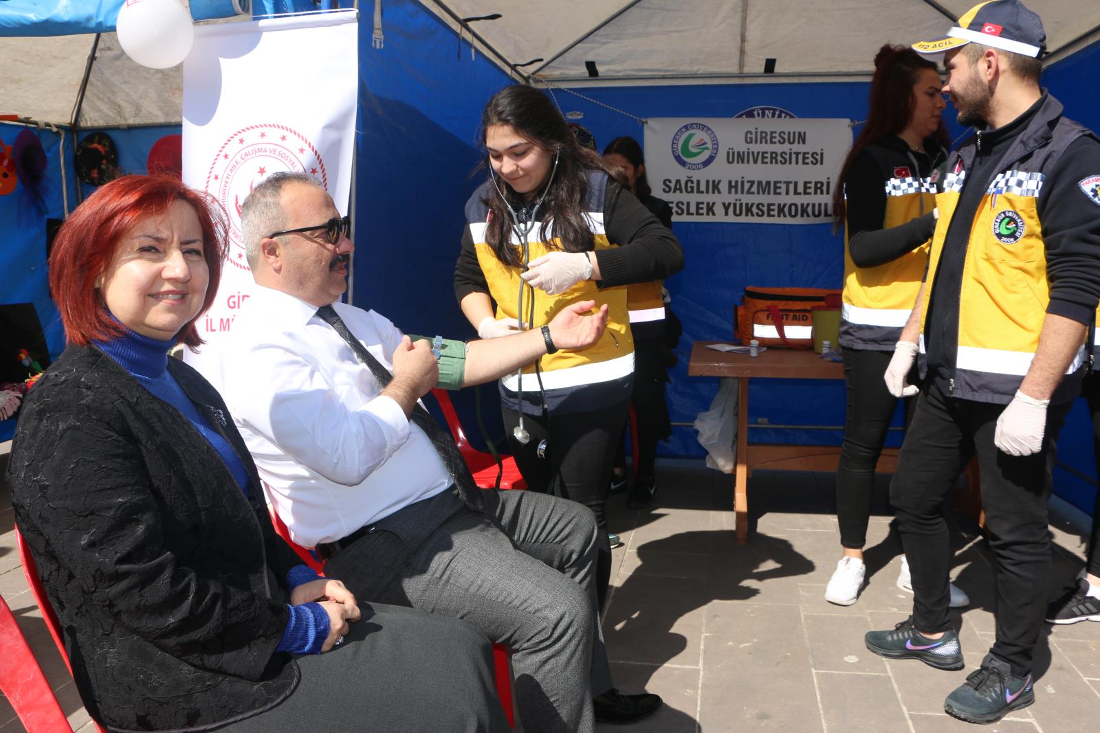 Giresun Vali Yardımcısı Metin Maytalman ile Aile ve Sosyal Politikalar İl Müdürü Mustafa Tosun’un da katıldığı etkinlik kapsamında öğrencilerimiz tarafından yaklaşık 300 kişinin tansiyon ve kan şekeri değerleri ölçülürken ayrıca; vatandaşlara sağlıkla ilgili çeşitli konularda bilgilendirme yapıldı.